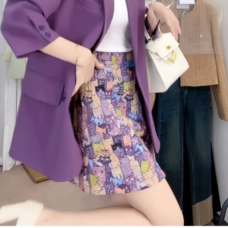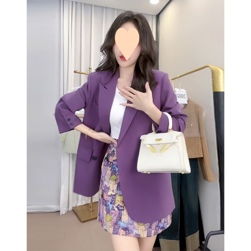 여성을위한 보라색 정장 인기 정장 스커트 2025 봄 새로운 하이 엔드 패션 정장 재킷 스커트 투피스 세트스토어 가기