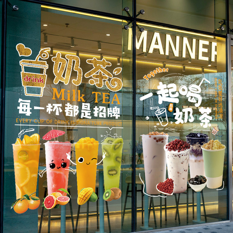 밀크 티 샵 유리 도어 스티커 크리 에이 티브 창 포스터 벽 장식 인터넷 연예인 커피 음료 차가운 음료 스티커스토어 가기