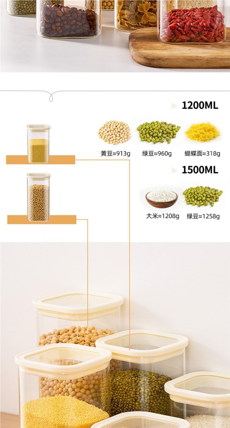 밀봉된 항아리, 곡물, 주방 보관함, 식품 등급 투명 유리 항아리 상자, 국수 건조 식품, 차 보관 항아리
