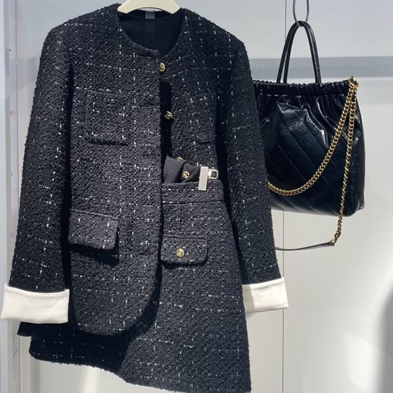 한국식 작은 향기 스타일의 가을 겨울 신작 여성용 코트와 스커트 투피스 세트