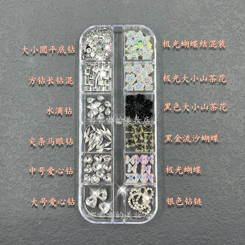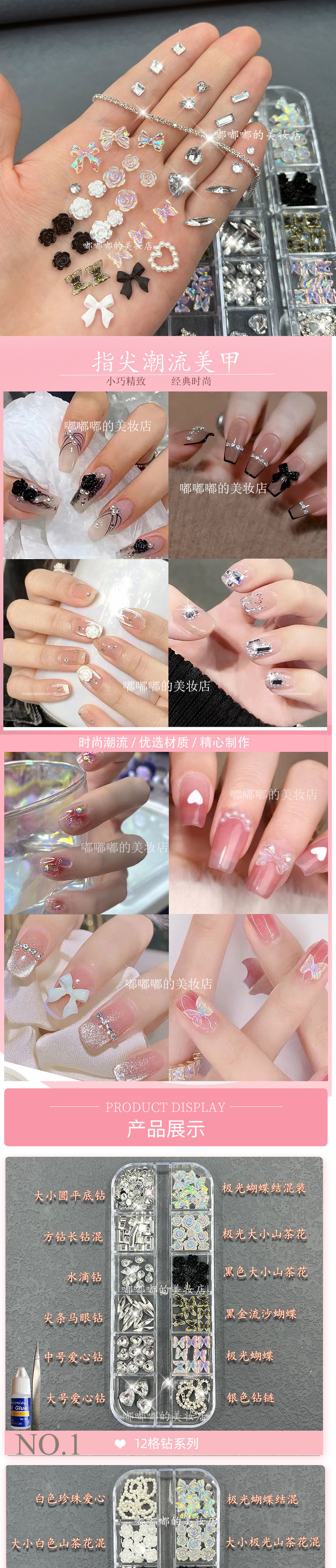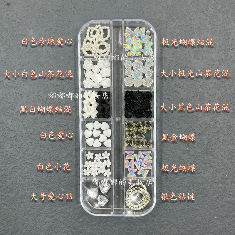 네일 아트 액세서리 12 그리드 체인 오로라 흑백 활 곰 나비 장미 사랑 일본 수지 다이아몬드
