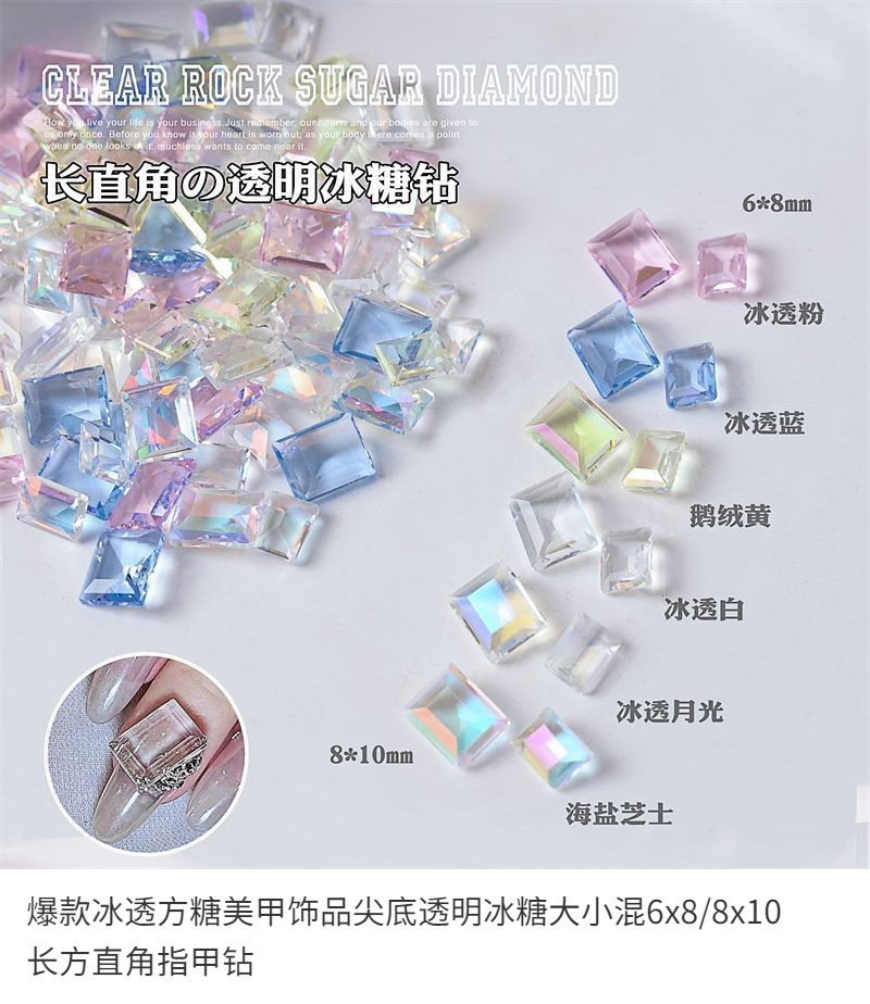 인기있는 얼음 투명 설탕 큐브 네일 아트 쥬얼리 뾰족한 바닥 투명 설탕 크기 혼합 6x8/8x10 직사각형 직각 네일 드릴스토어 가기