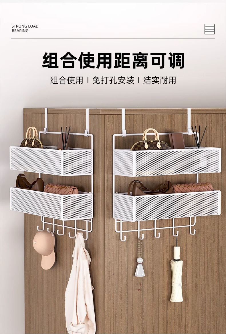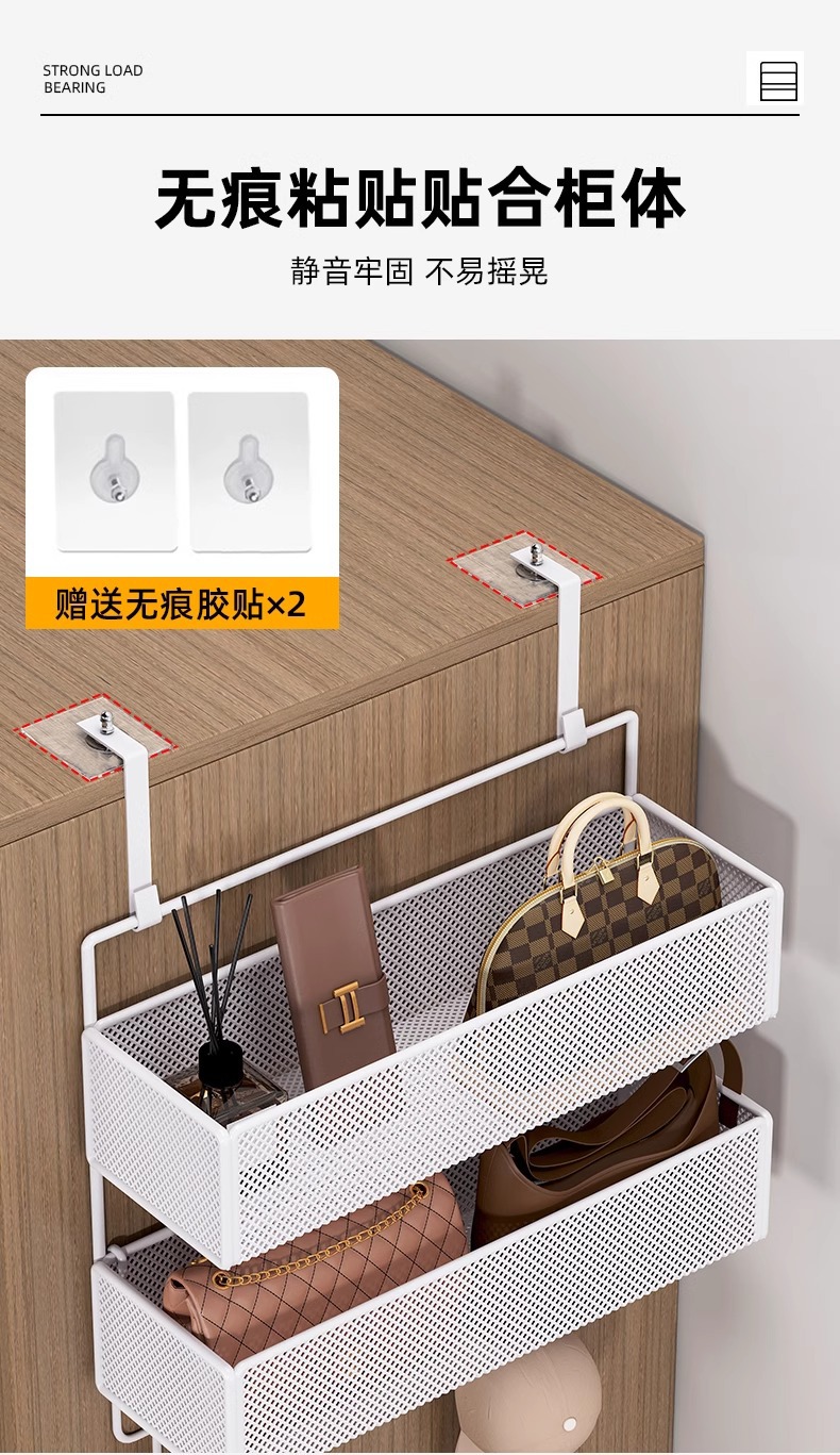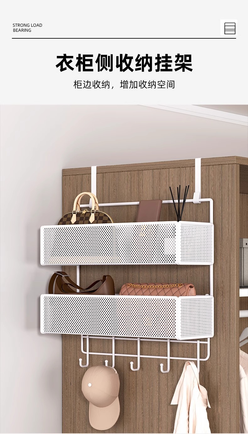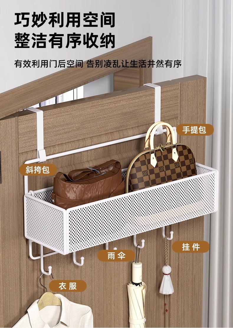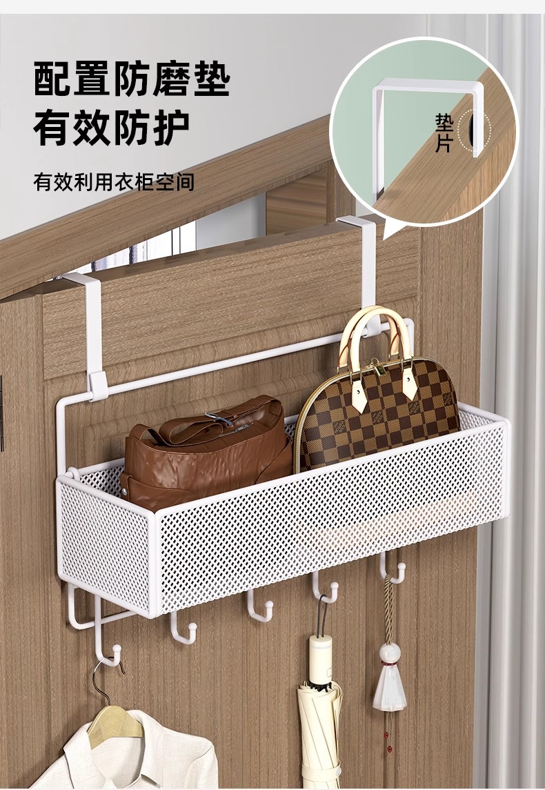 문 뒤에 걸 수 있는 선반, 문 걸이 후크, 구멍을 뚫을 필요 없이 옷 걸기, 초박형 가방 걸이, 옷장 측면 걸이 바구니