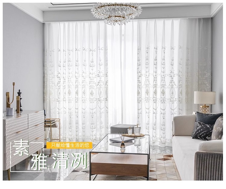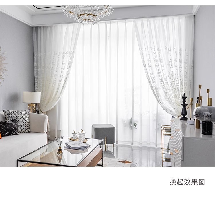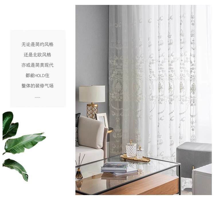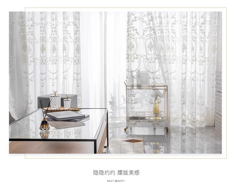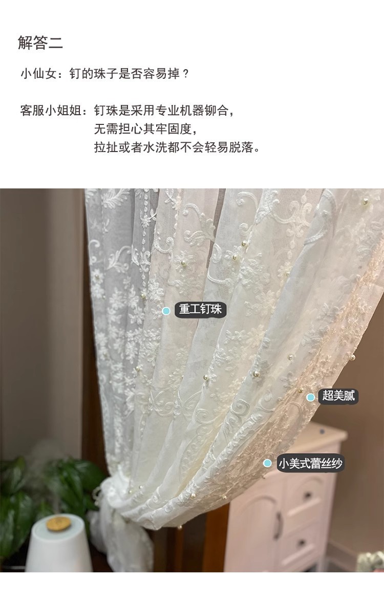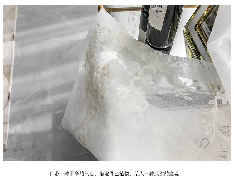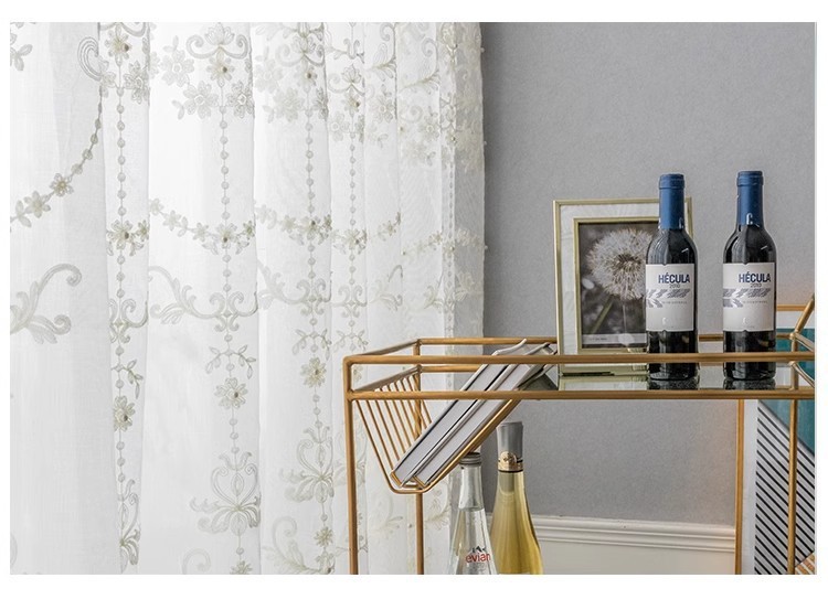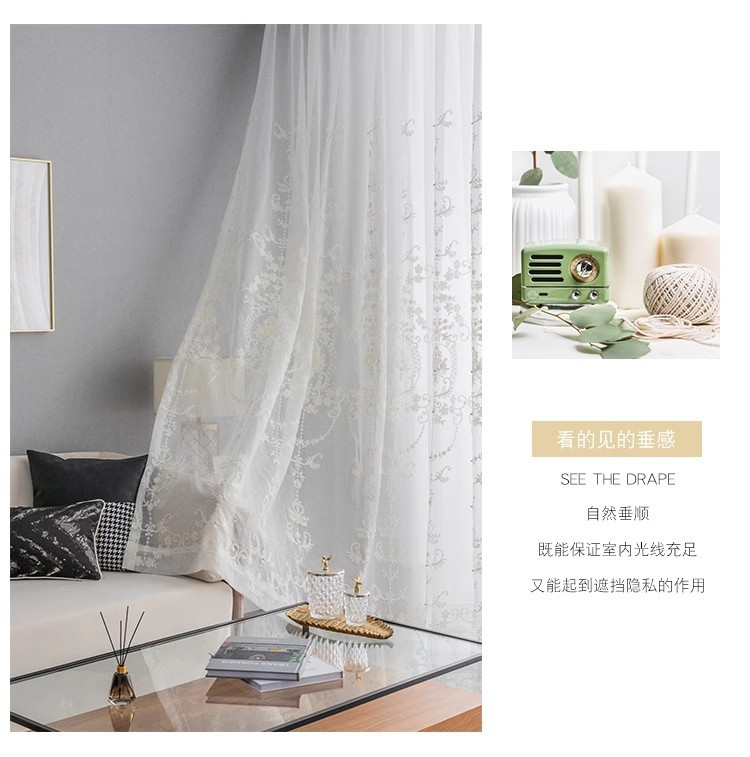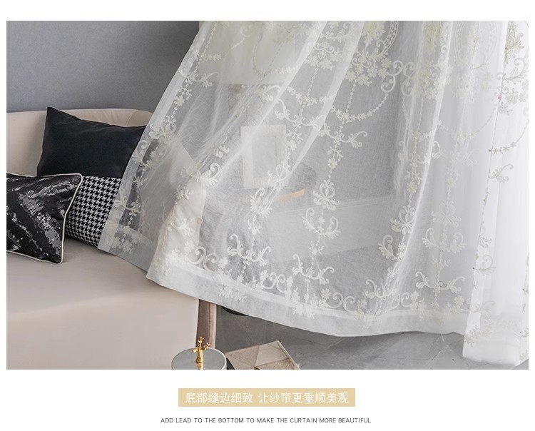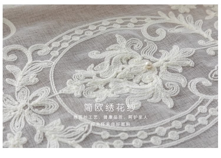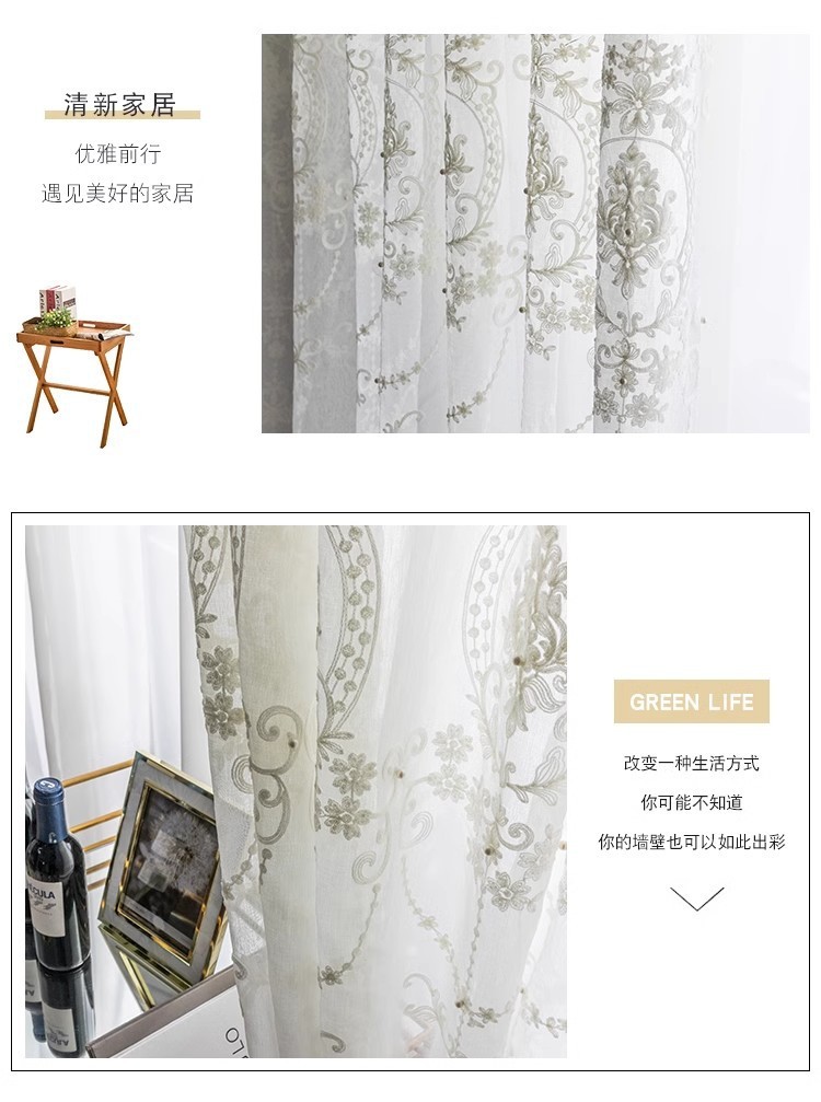 커튼 라이트 럭셔리 작은 미국 유럽 스타일의 분위기있는 흰색 거즈 자수 창 스크린 거실 침실 진주 거즈 커튼 발코니