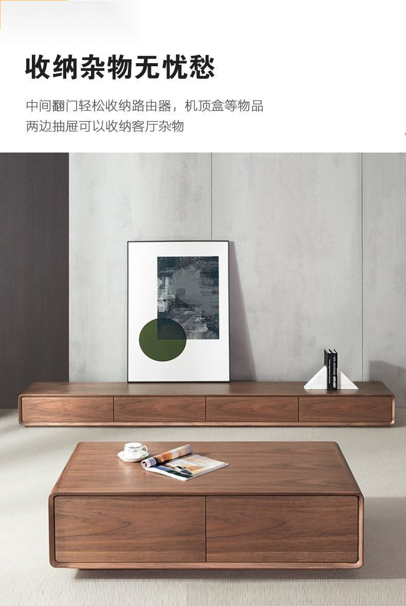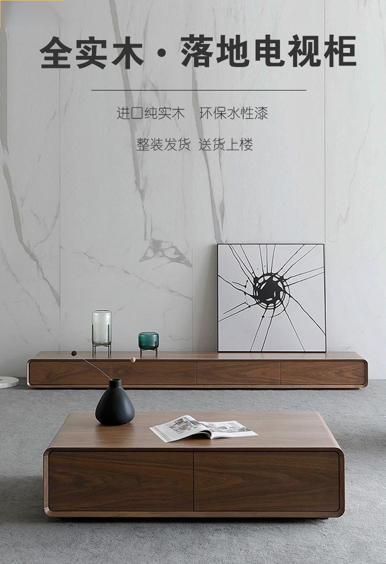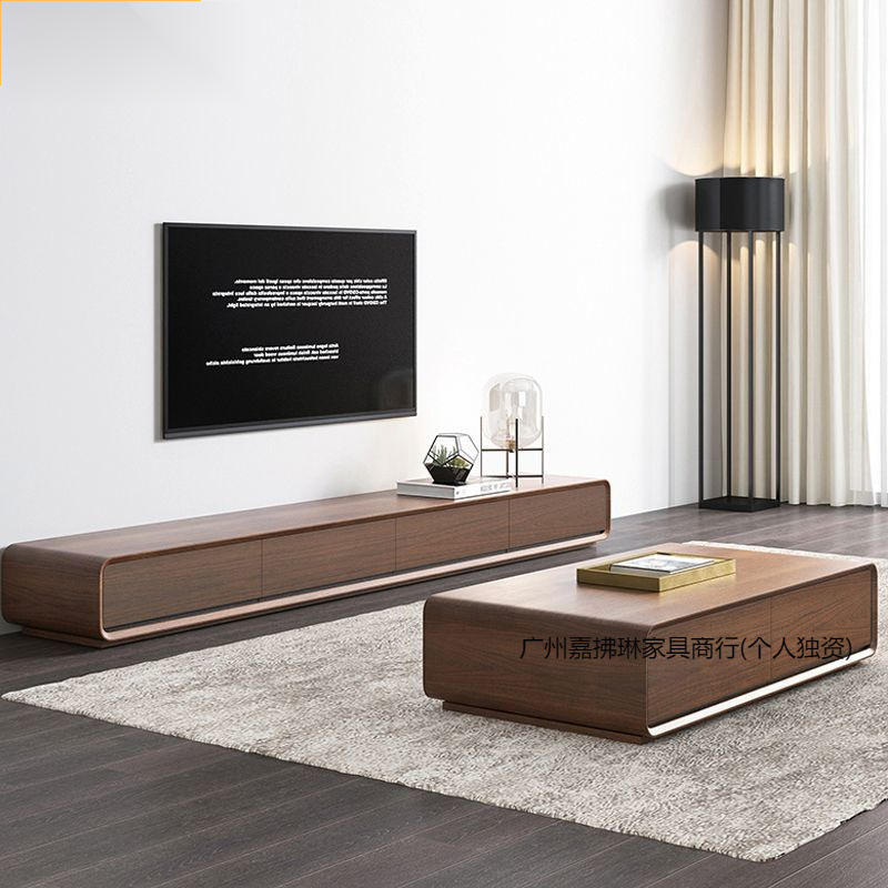 단단한 나무 TV 캐비닛, 심플하고 모던한 바닥 캐비닛, TV 캐비닛, 호두색 거실, 소형 아파트, 초소형 바닥에서 천장까지 이어지는 조명 럭셔리 TV스토어 가기