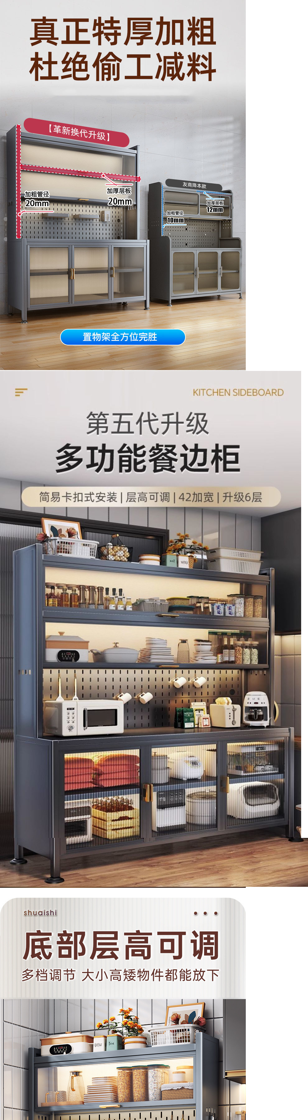 주방 다층 철제 수납 캐비닛 찬장 다기능 가정용 수납 그릇 수납 선반 레스토랑 가구스토어 가기