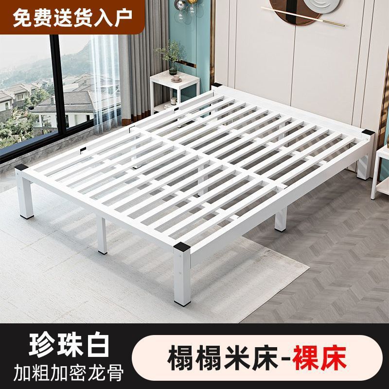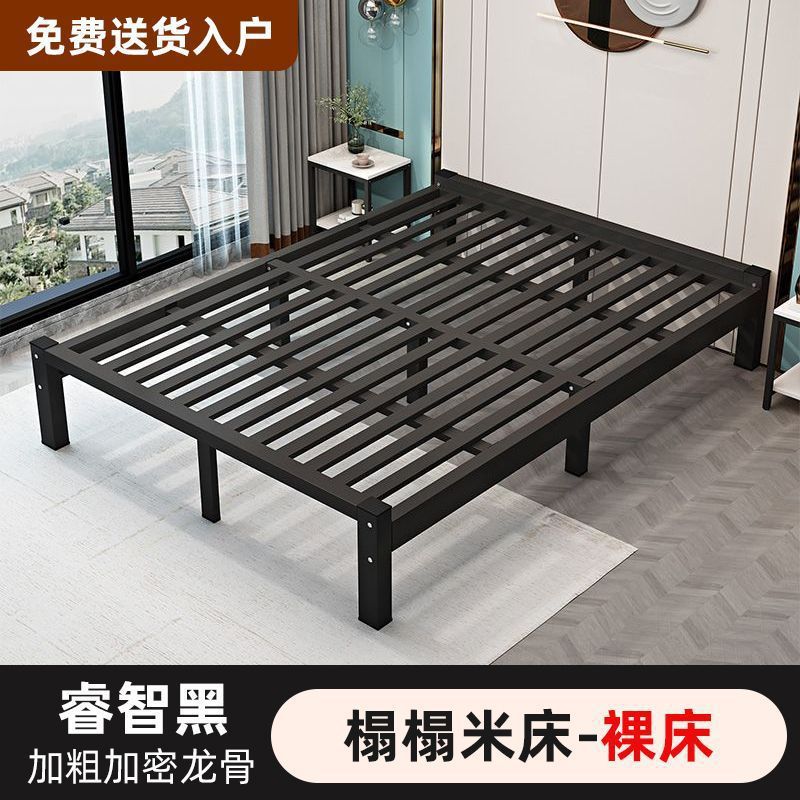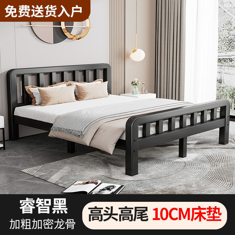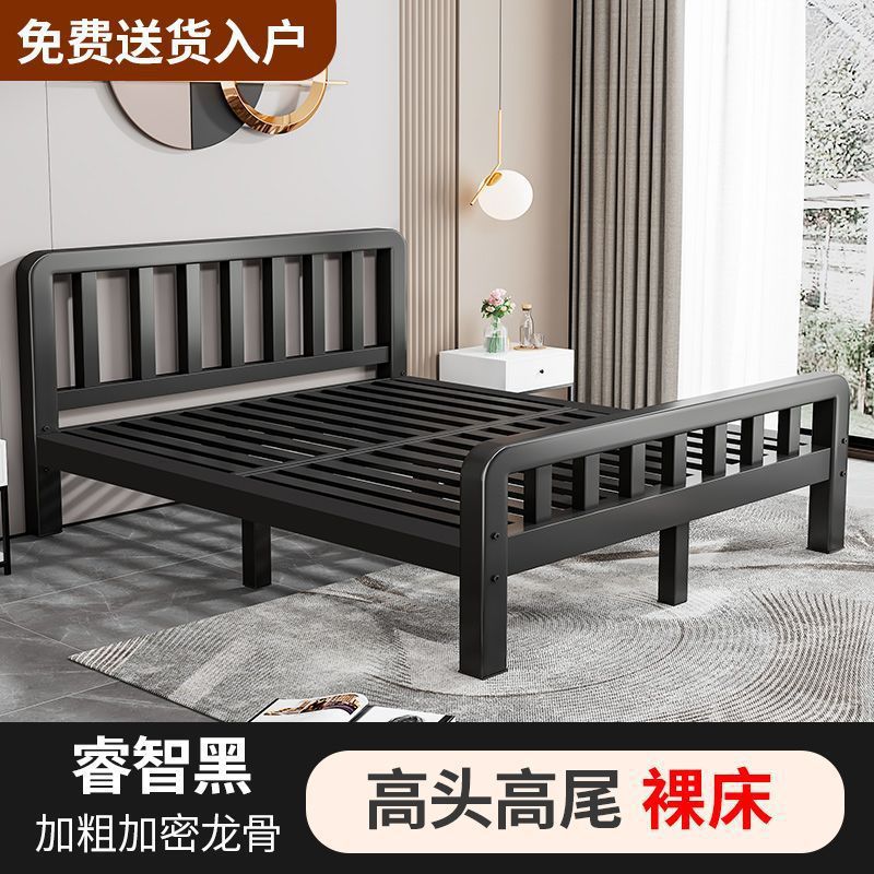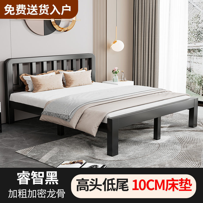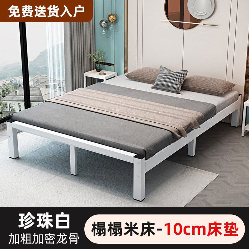 철제 침대 더블 1.8m 현대적인 간단한 스테인레스 스틸 철 강화 두꺼운 싱글 1m 침대 임대 주택 침대 철 프레임스토어 가기