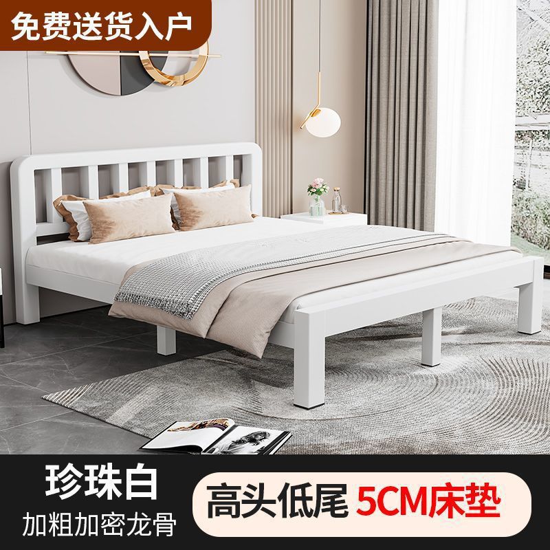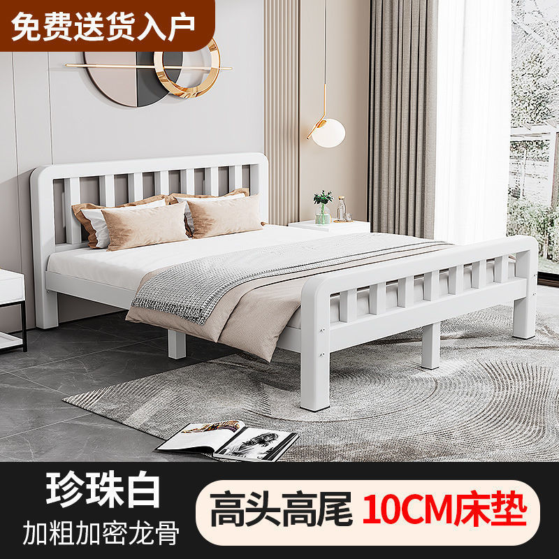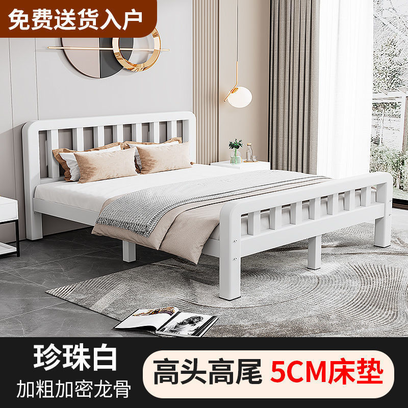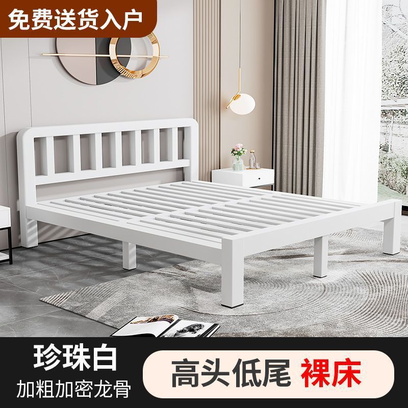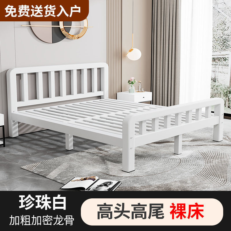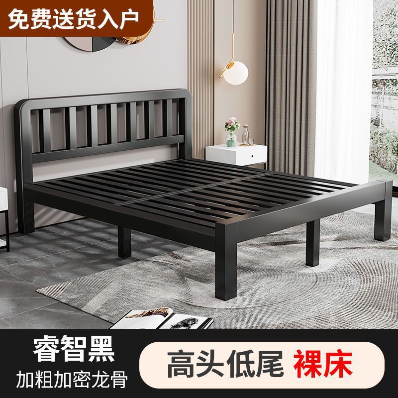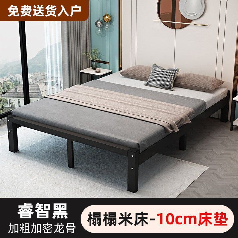 철제 침대 더블 1.8m 현대적인 간단한 스테인레스 스틸 철 강화 두꺼운 싱글 1m 침대 임대 주택 침대 철 프레임스토어 가기