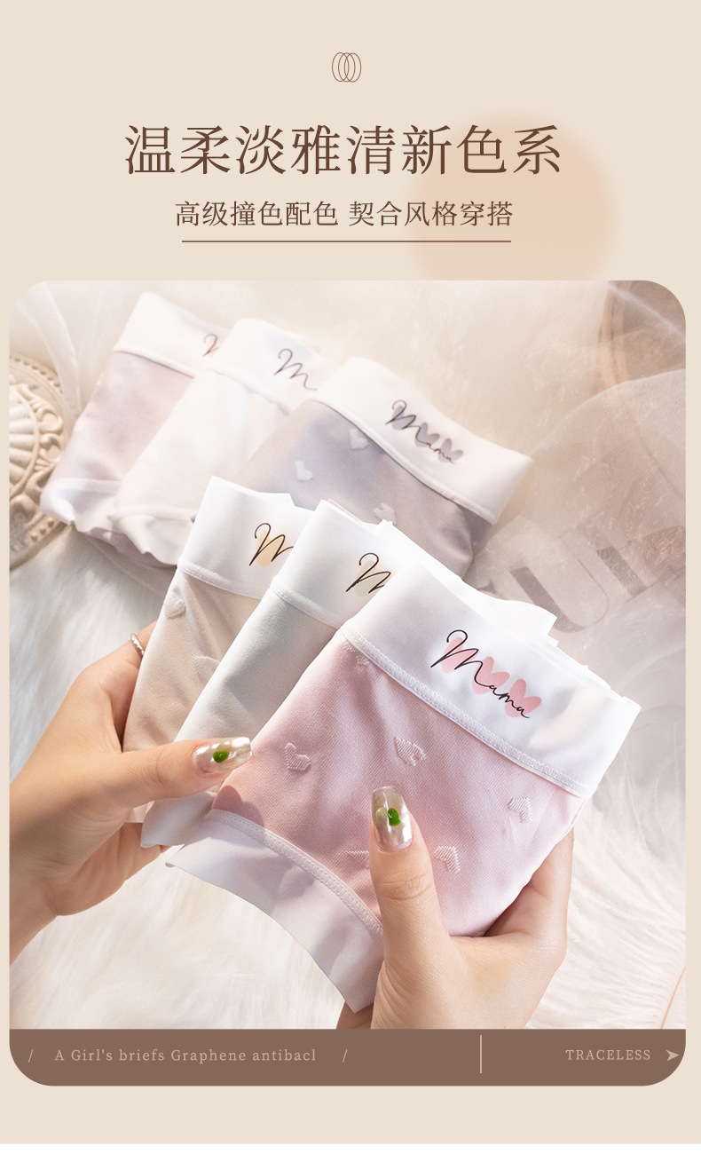 여성용 여름 얇은 순면 속옷, 중간 허리, 심리스 모달 러브 소녀 학생 삼각형 반바지스토어 가기
