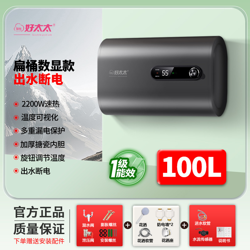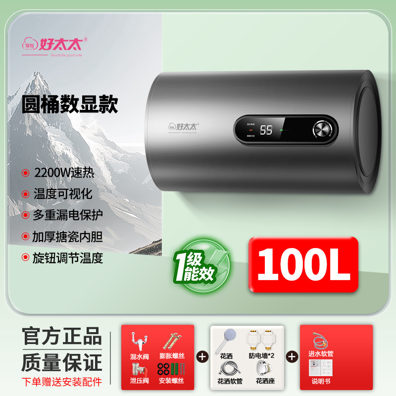 • 플랫 배럴 100리터/기계식 버전, 물 배출구 및 정전 [설치 포함] 디지털 디스플레이 이중 방광