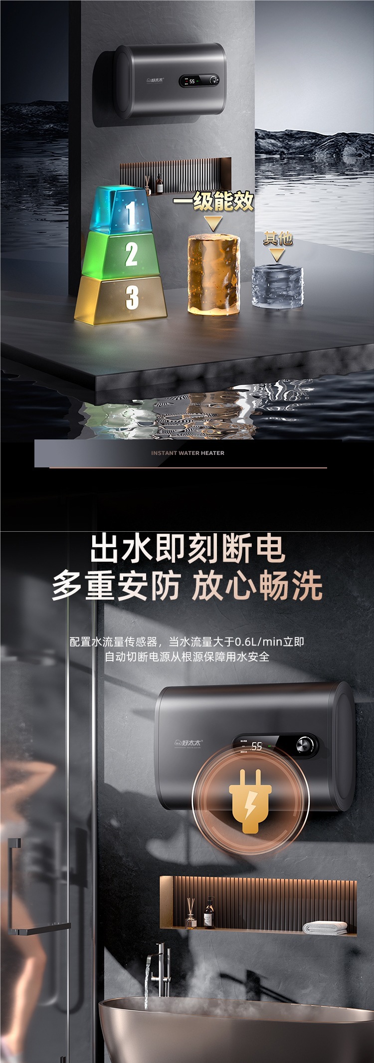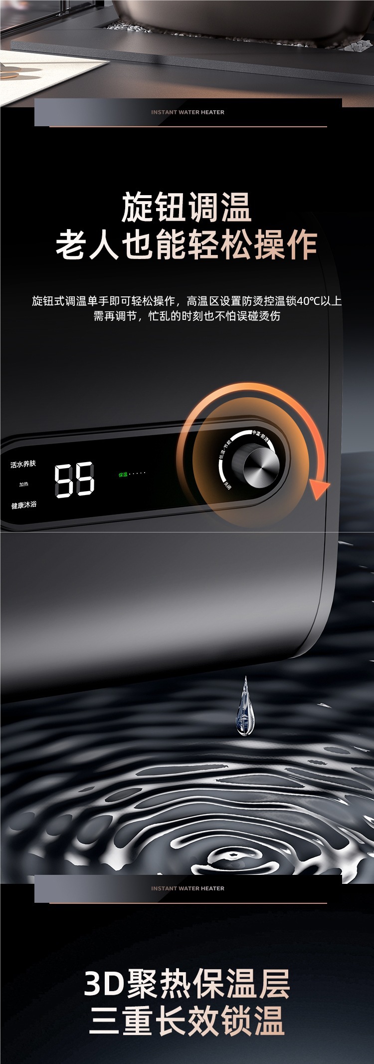 • 플랫 배럴 60리터/기계식 버전, 물 배출구 및 정전 [설치 제외] 디지털 디스플레이 이중 탱크
