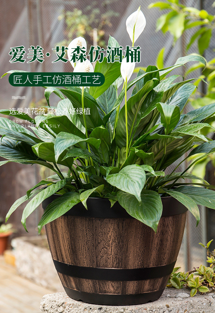 보울 연꽃, 와인통, 수지 화분, 두꺼운 구멍, 구멍 없는 초대형 연꽃 모조 플라스틱 화분, 수련 복고풍스토어 가기