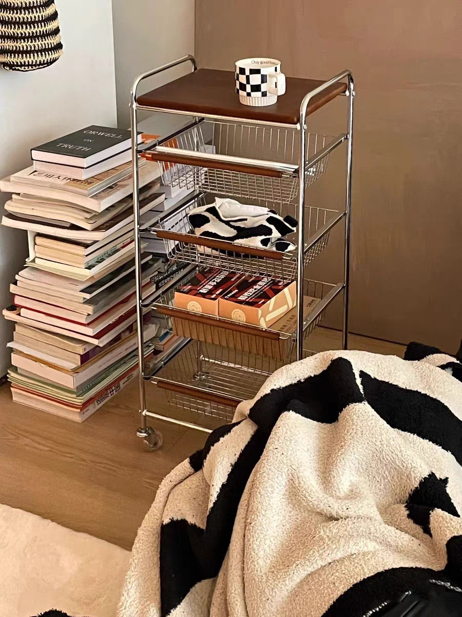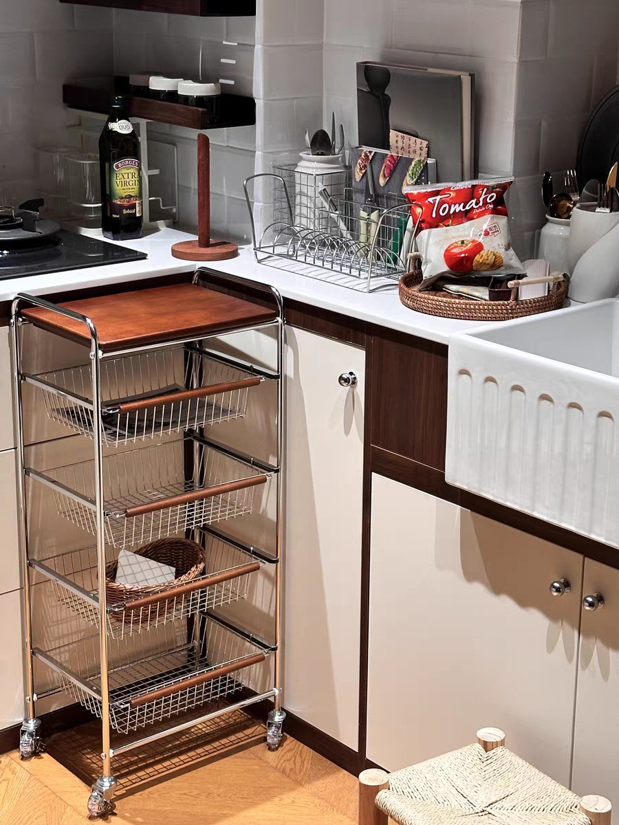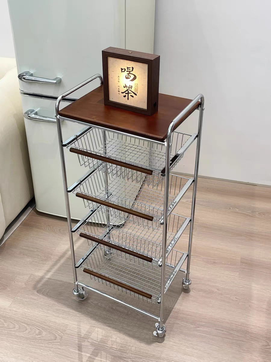 레트로 트롤리 보관 랙 이동식 다기능 스낵 보관 바구니 가정용 바닥에서 천장까지 다층 보관 랙