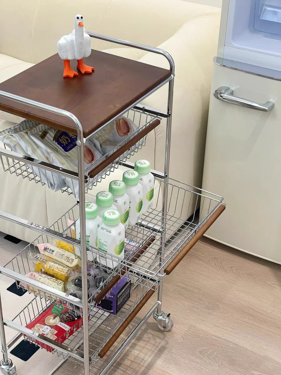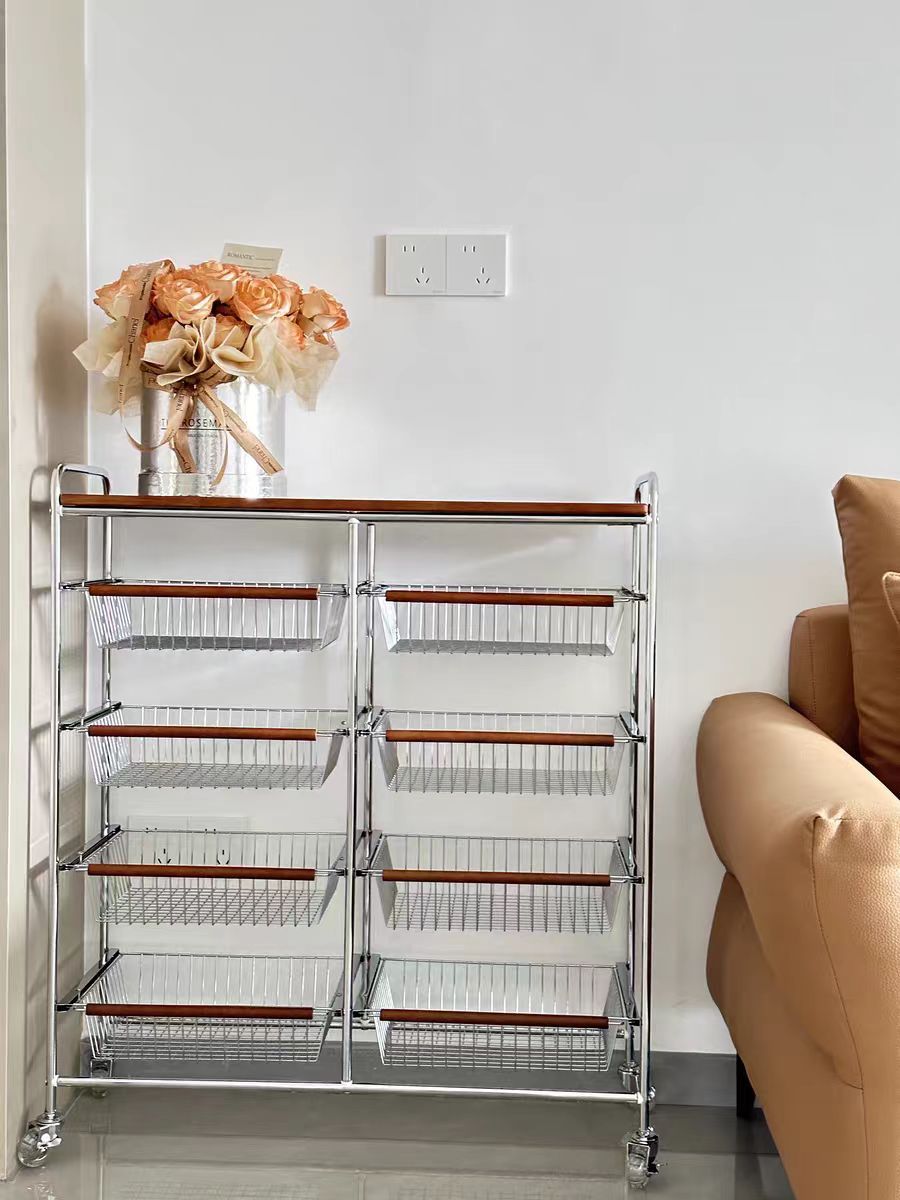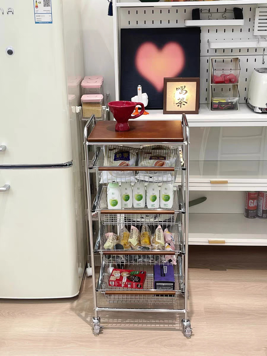 레트로 트롤리 보관 랙 이동식 다기능 스낵 보관 바구니 가정용 바닥에서 천장까지 다층 보관 랙