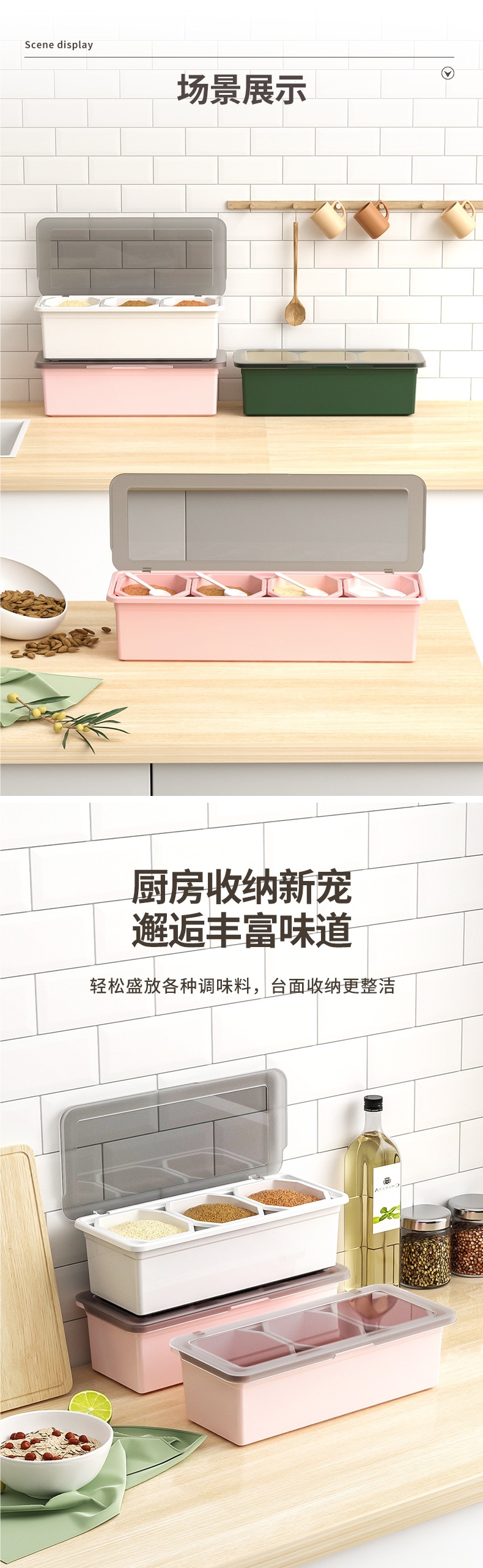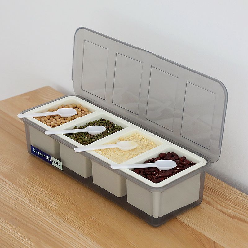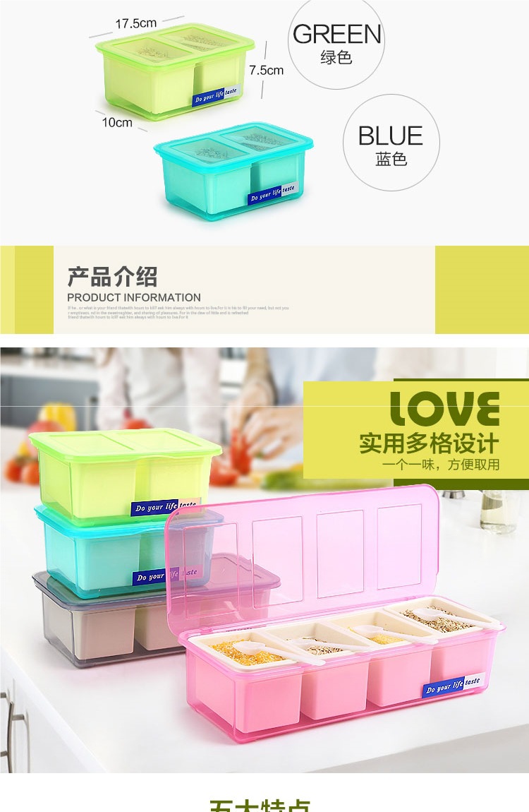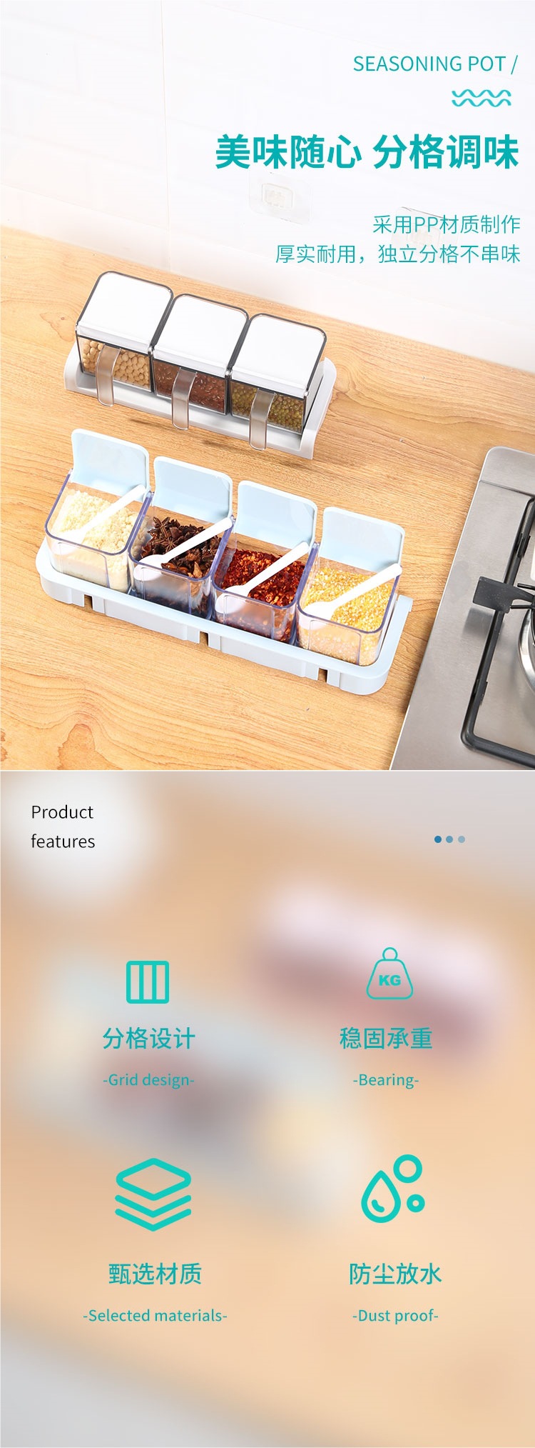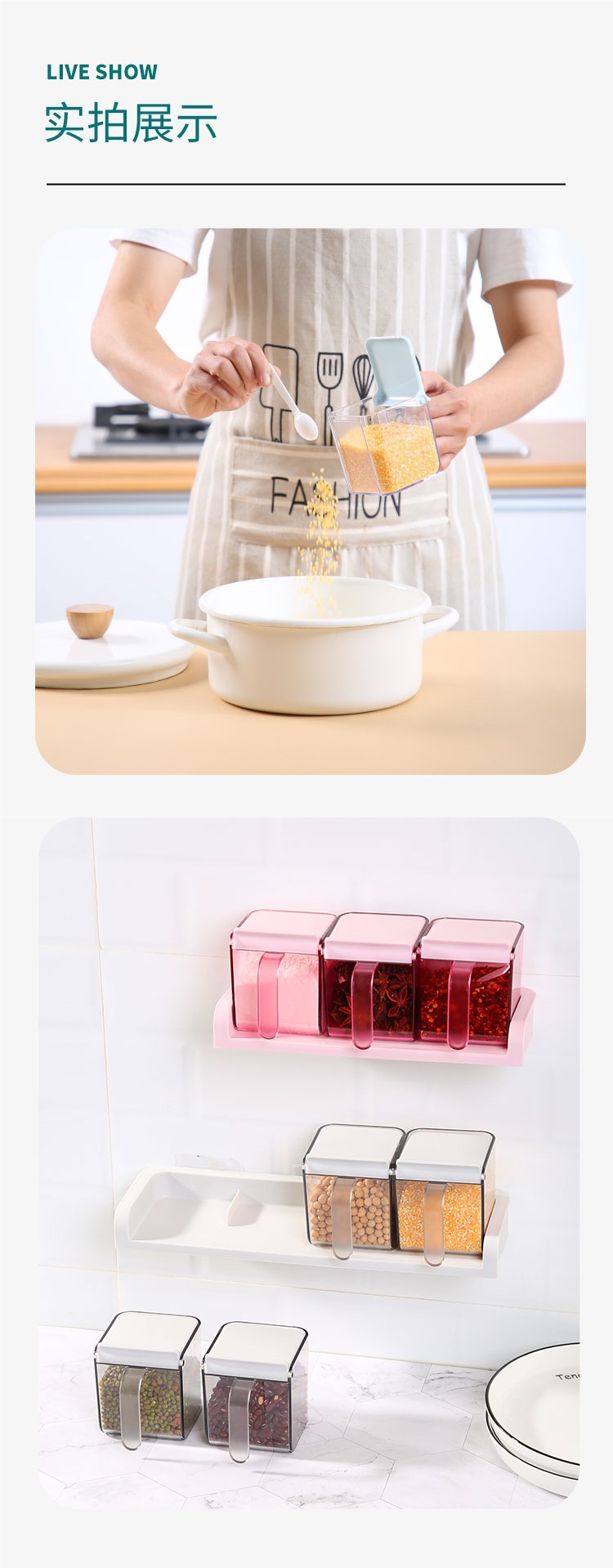 크리 에이 티브 주방 조미료 병 조미료 항아리 플라스틱 세트 MSG 소금 상자 4 형식 스푼 조합 플립 탑 조미료 상자