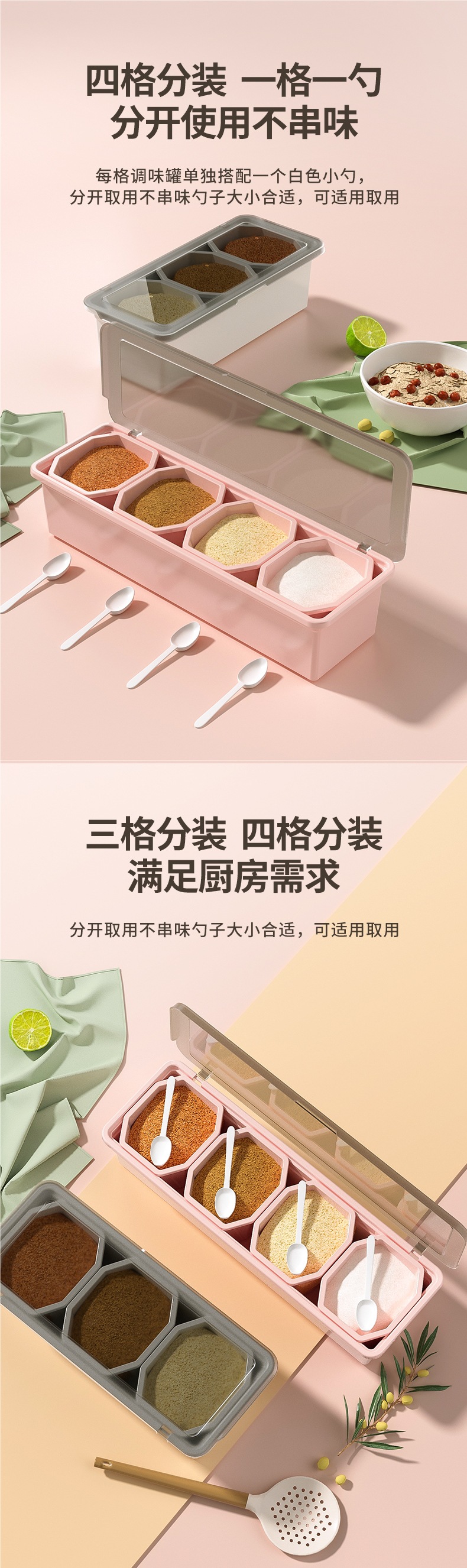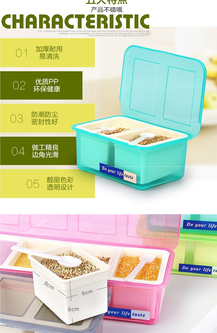크리 에이 티브 주방 조미료 병 조미료 항아리 플라스틱 세트 MSG 소금 상자 4 형식 스푼 조합 플립 탑 조미료 상자스토어 가기