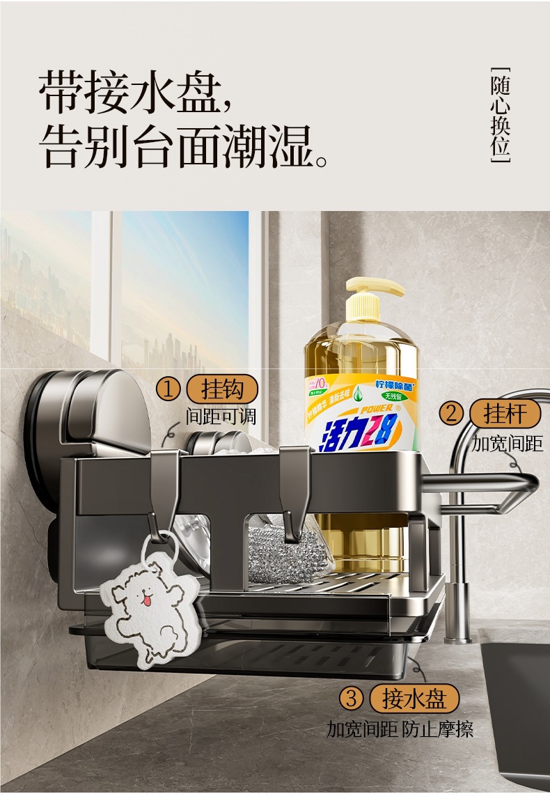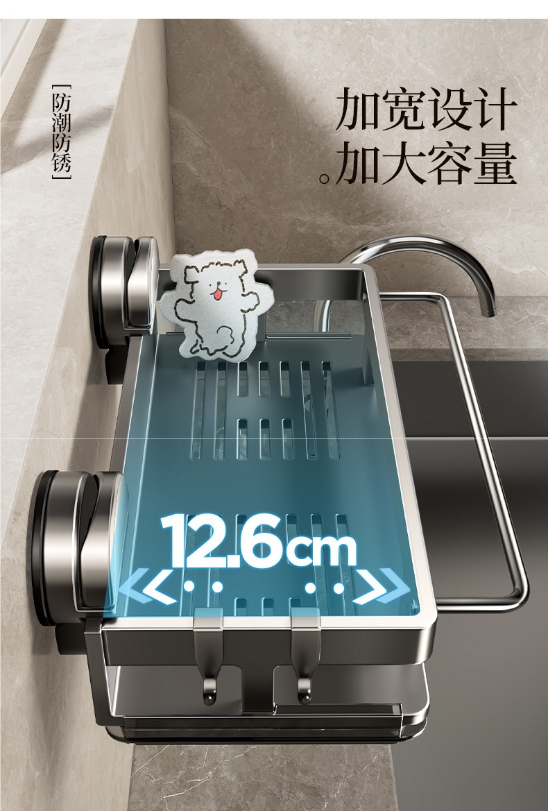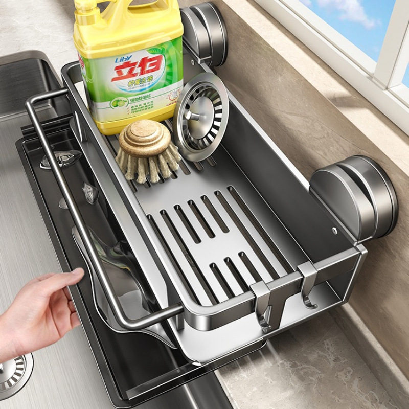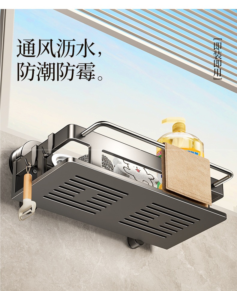 흡착컵 주방수납선반 걸레수납 배수선반 펀치 없는 벽걸이 양념선반 싱크대 흡착컵 배수선반
