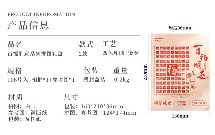 서예 텍스트, 기념품, 창의적인 축복, 생일 퍼즐, 사진 프레임, 선물 상자, 축복, 재미있는 중국 스타일스토어 가기