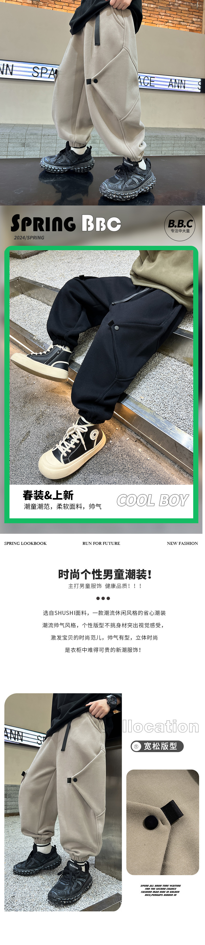 소년 가을 바지 2024 새로운 큰 어린이 느슨한 유행 바지 봄과 가을 스타일 스트리트 가을 잘 생기고 트렌디하고 멋집니다스토어 가기