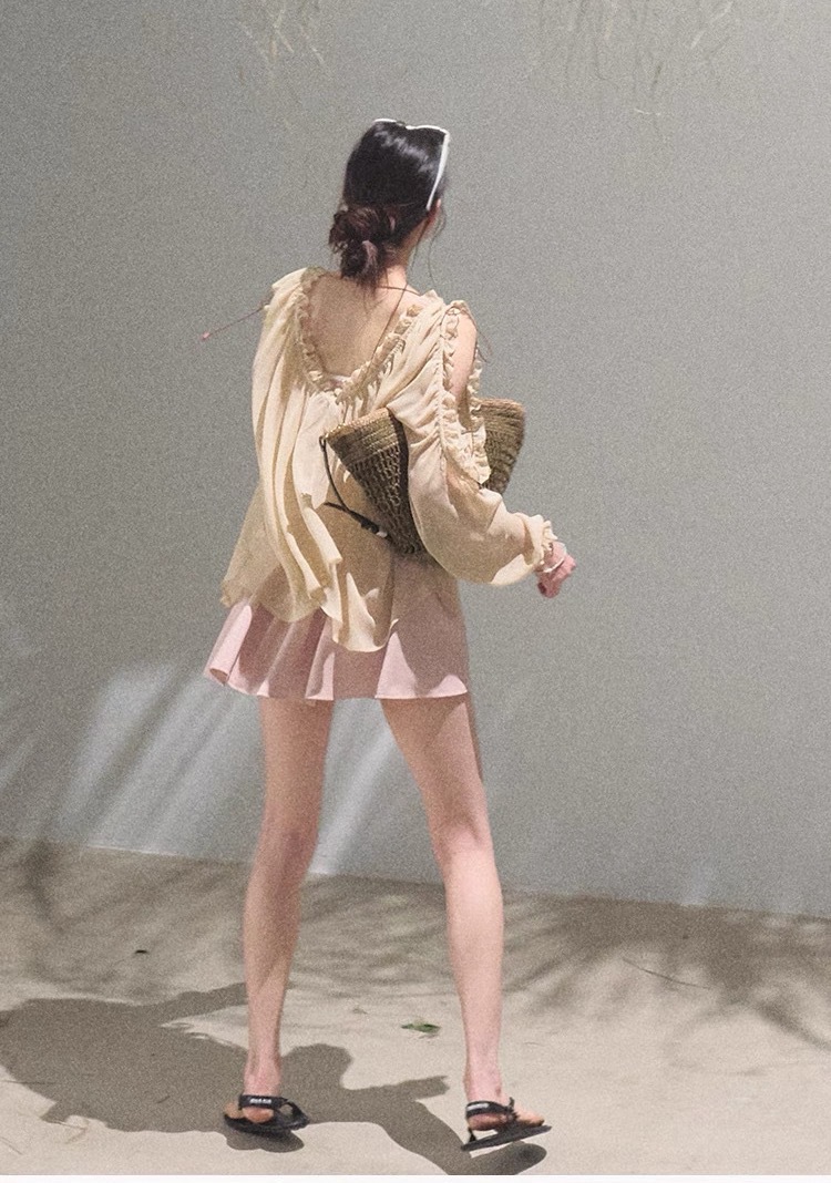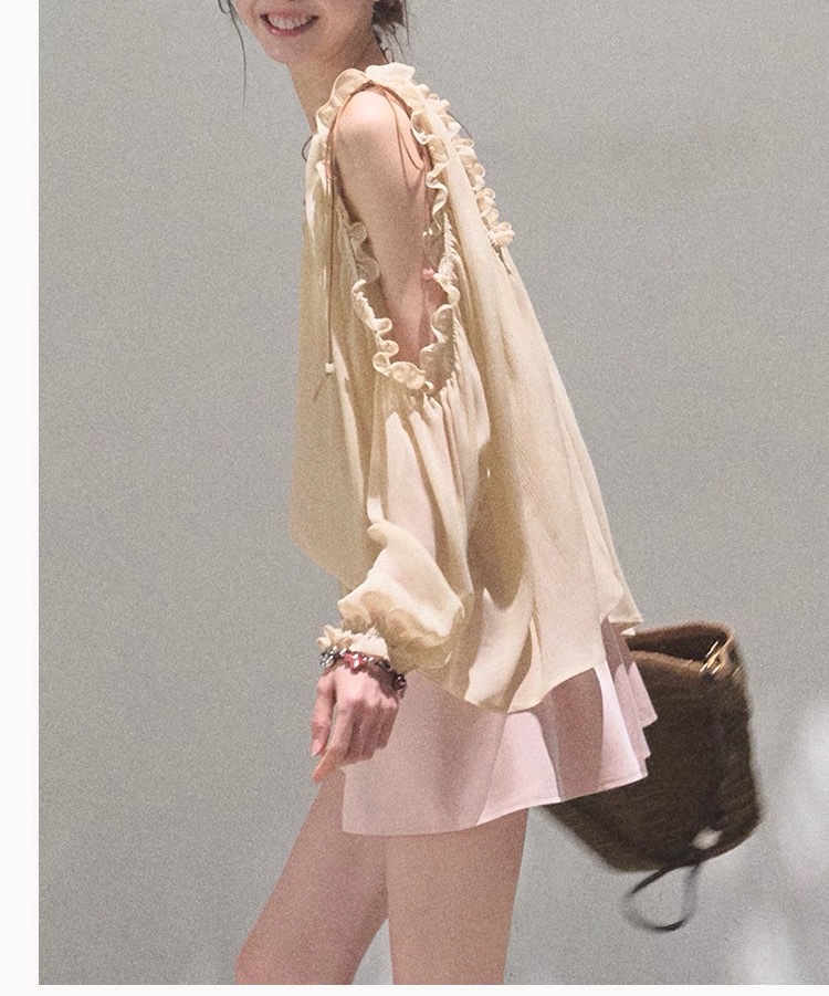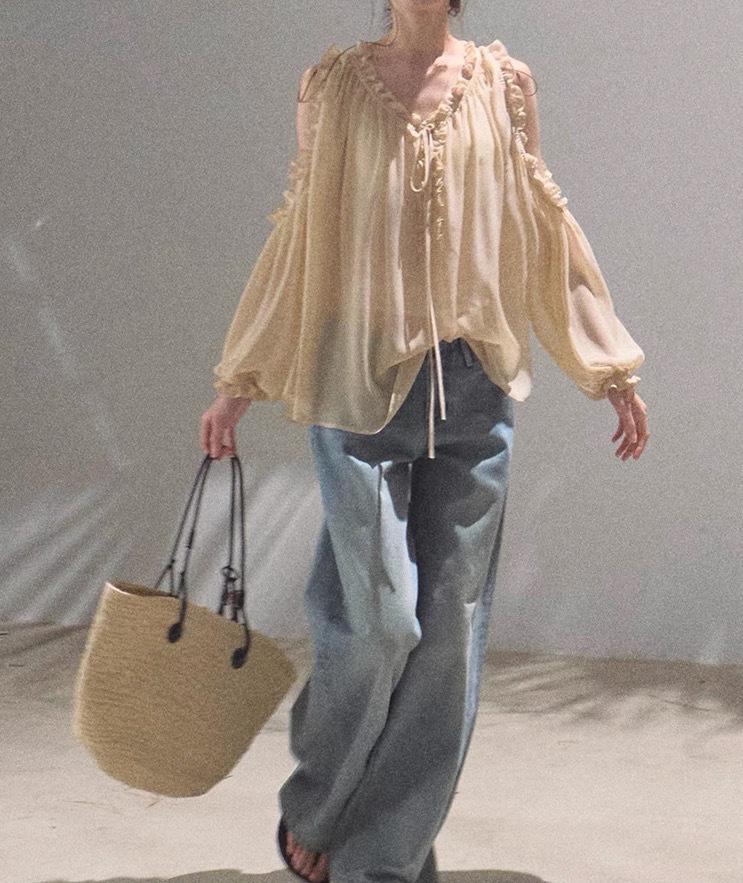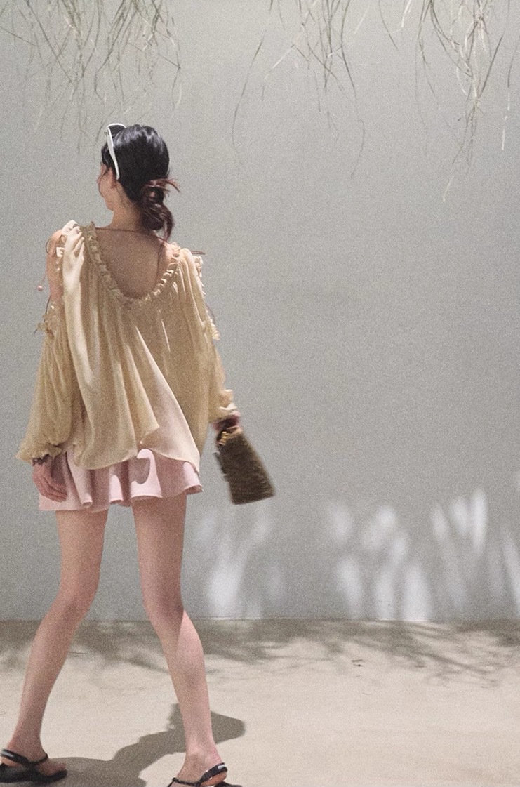 OAKMOO/ "Time is more concrete" 여름 디자인 쉬폰 셔츠 여성 루즈한 브이넥 탑 블라우스스토어 가기