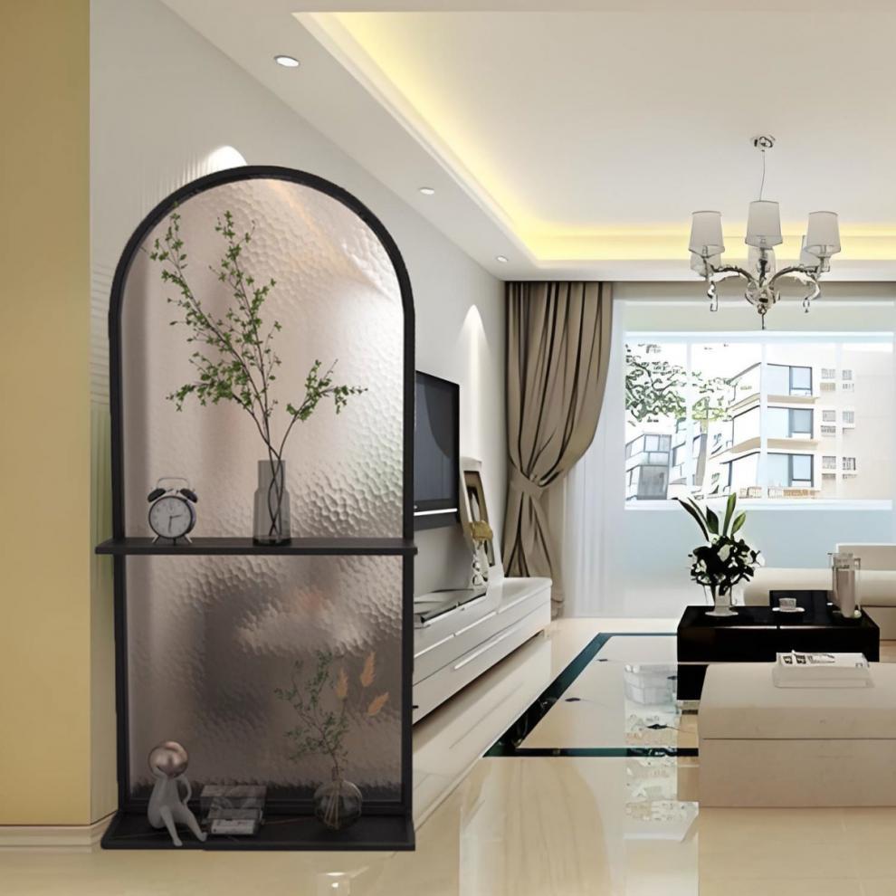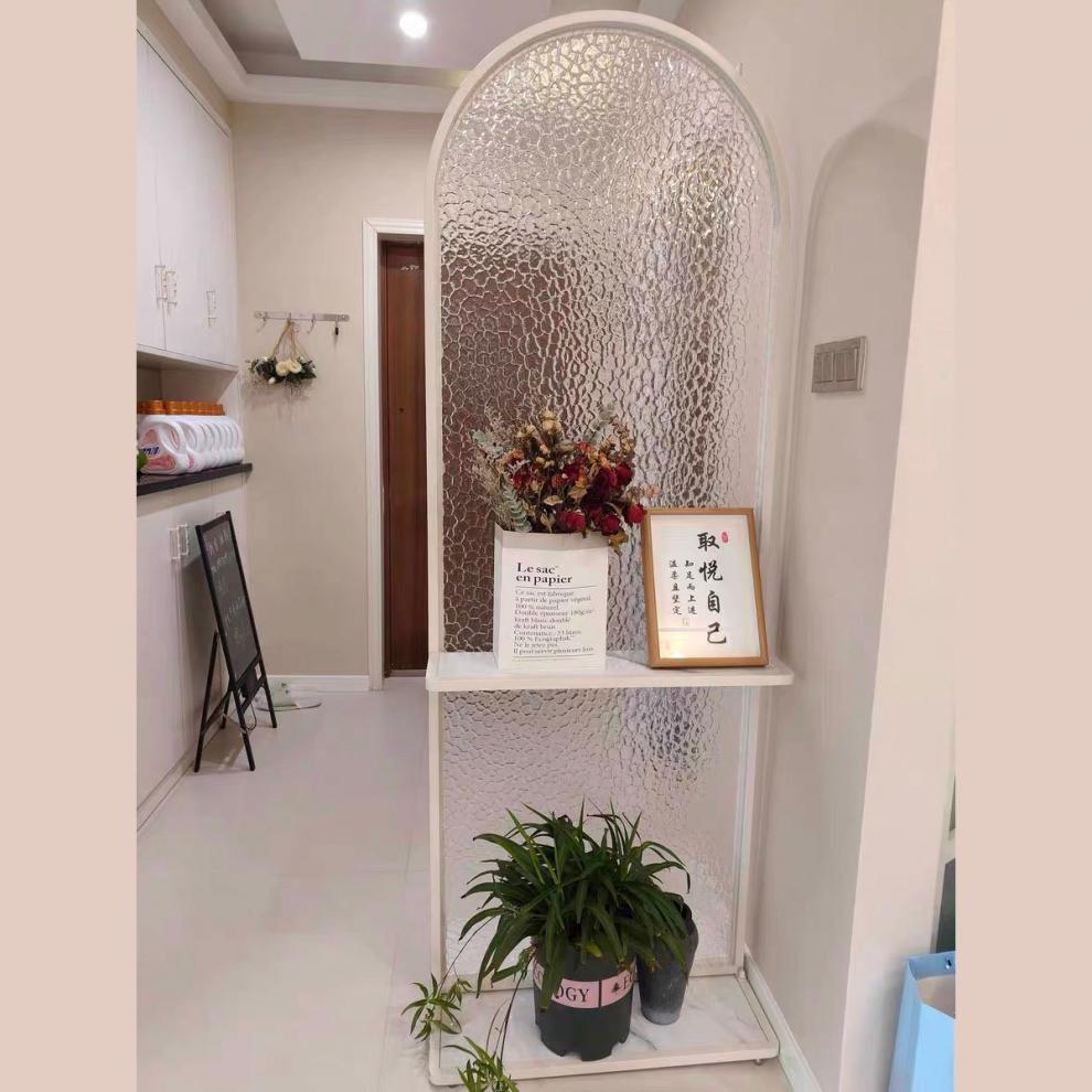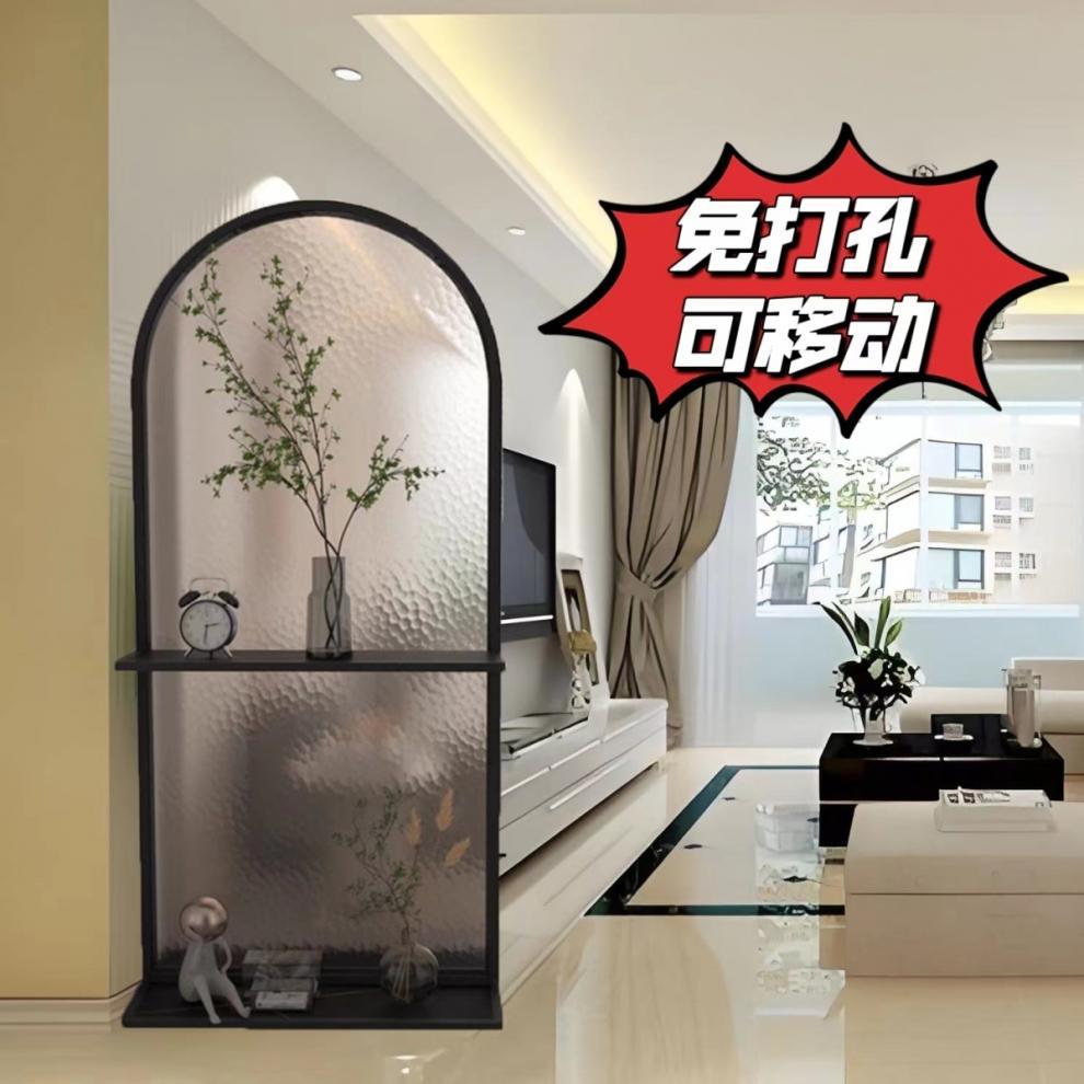 구멍이 없는 크림 스타일 Changhong 유리 스크린 파티션 거실 차단 침실 스크린 파티션 이동식스토어 가기