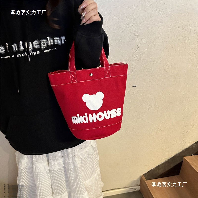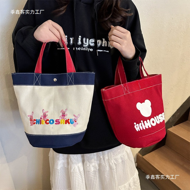 일본의 새로운 캔버스 가방 인쇄 만화 편지 휴대용 버킷 가방 대용량 도시락 가방 직장인 배낭
