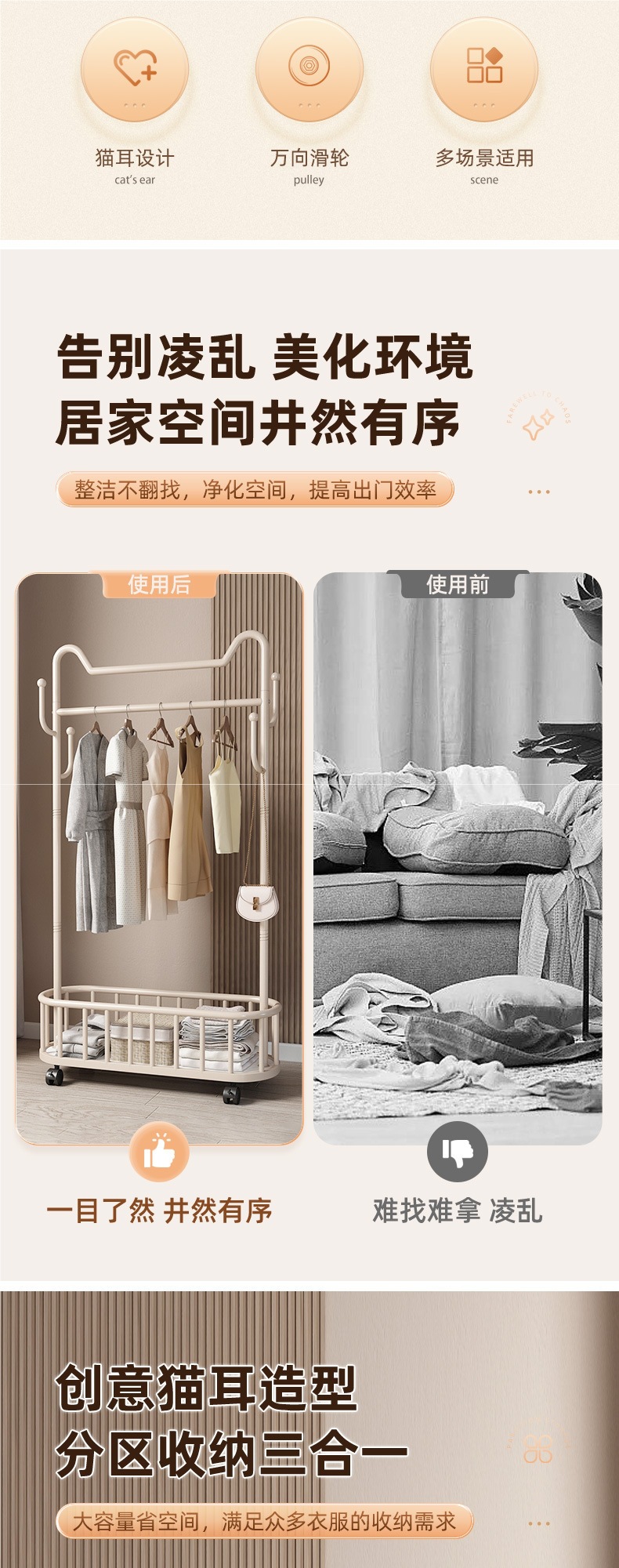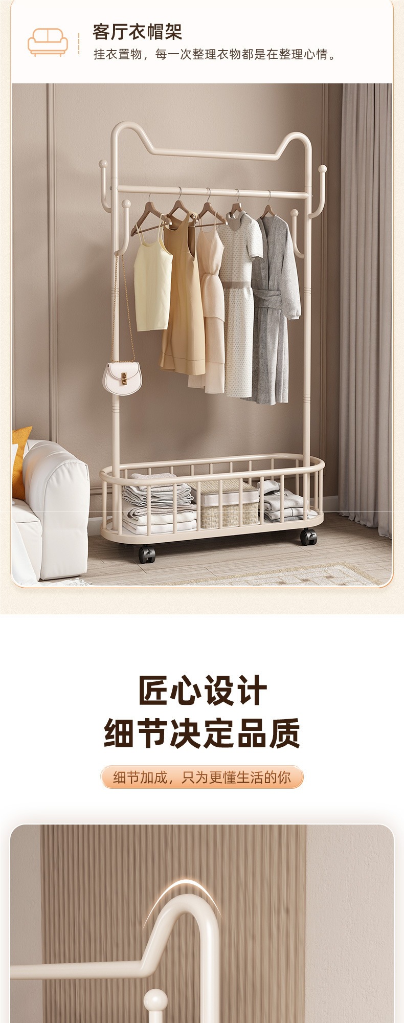옷걸이 바닥 스탠딩 수직 옷걸이 이동식 바퀴 달린 가정용 수납 옷걸이 거실 인터넷 연예인 가벼운 간단한 코트 랙