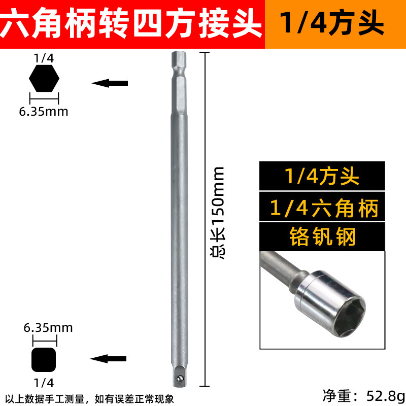 육각 핸들-사각 커넥터 슬리브 연결봉 전동 렌치 슬리브 헤드 연결 변환 레버 핸드 드릴 커넥터