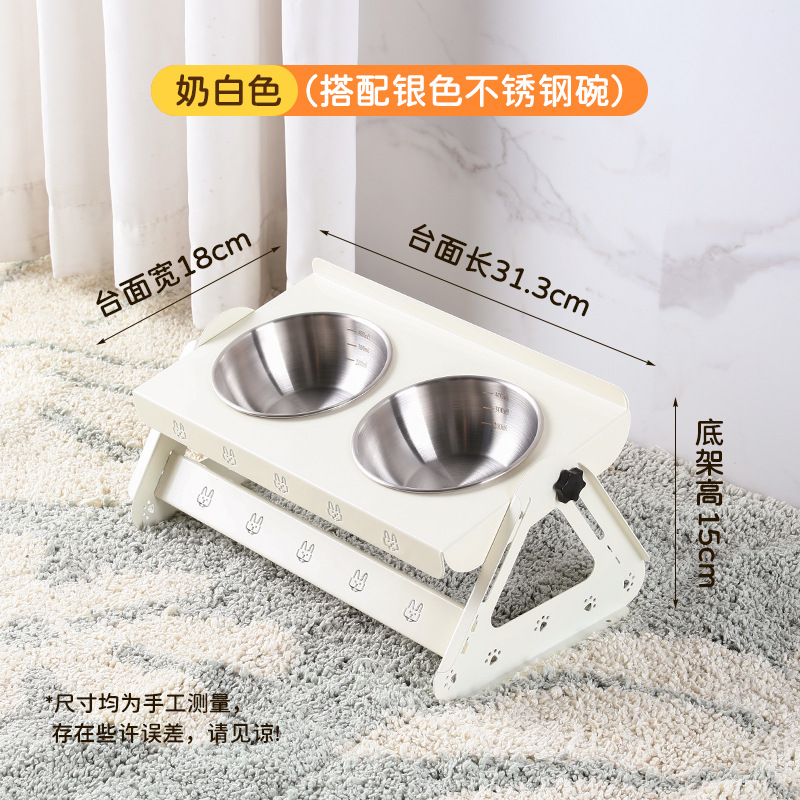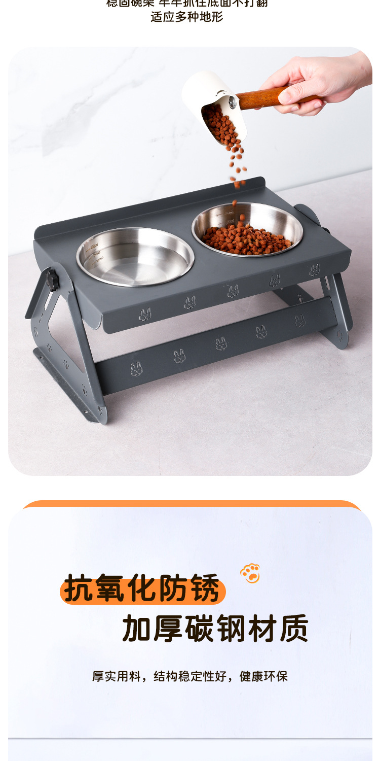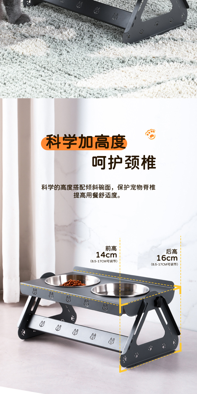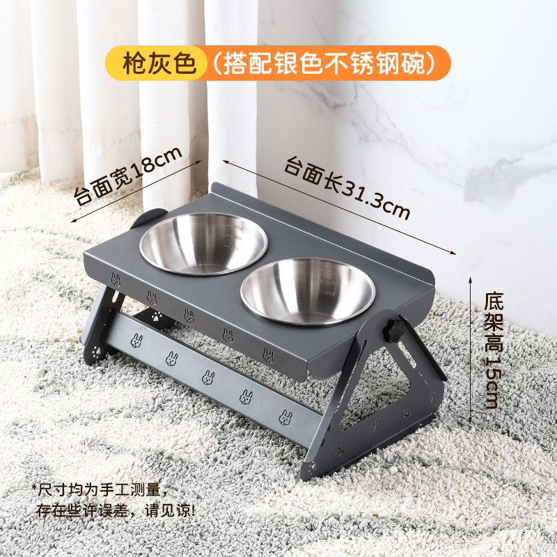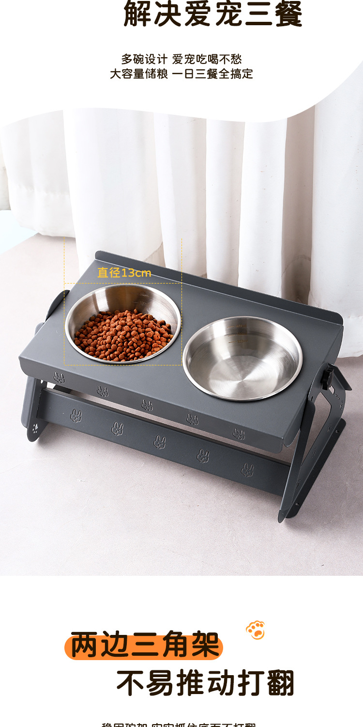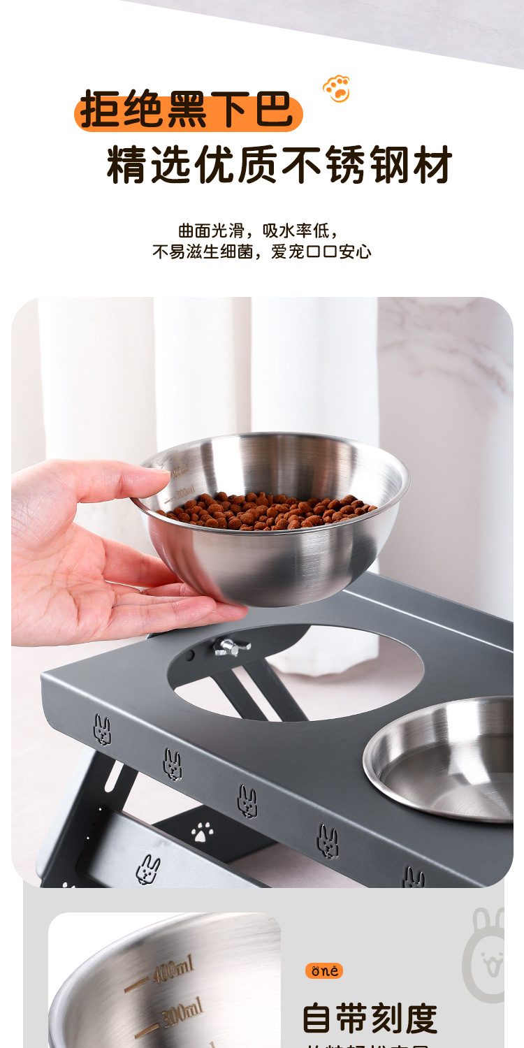 애완동물 용품 고양이 그릇 이중 그릇 통합 경추 보호 스테인레스 스틸 개 그릇 애완 동물 그릇 고양이 그릇 홀더 넘어짐 방지스토어 가기