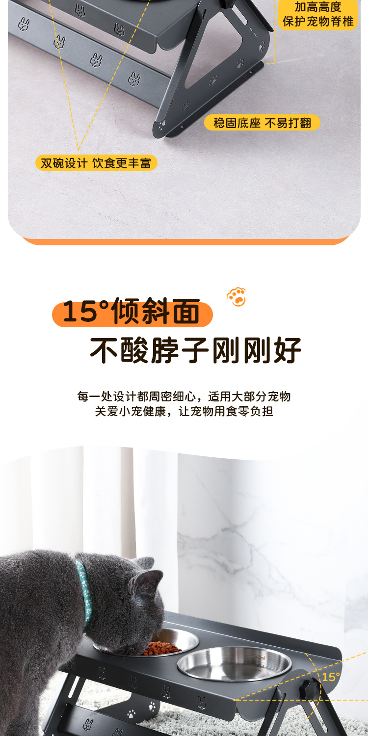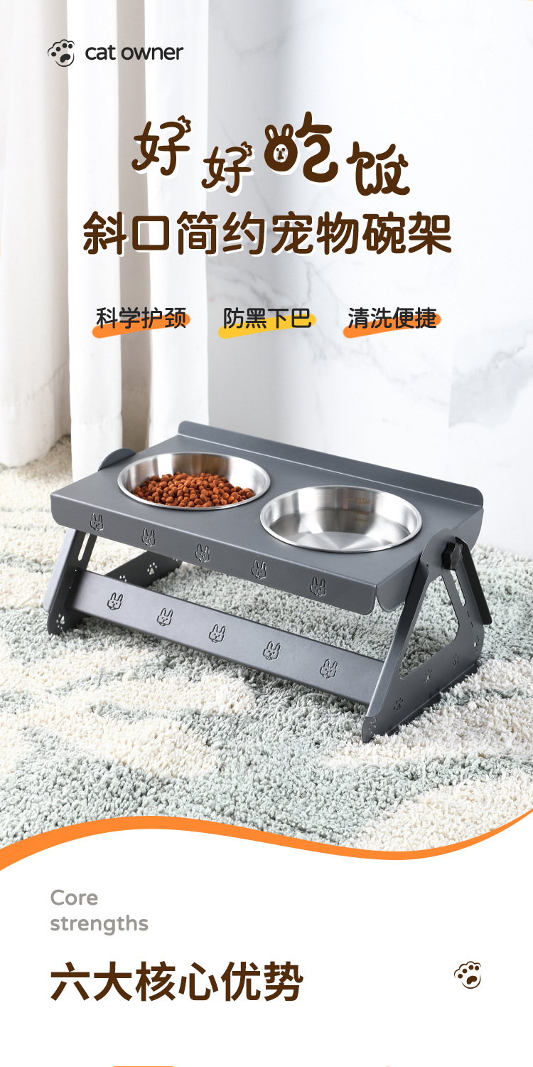 애완동물 용품 고양이 그릇 이중 그릇 통합 경추 보호 스테인레스 스틸 개 그릇 애완 동물 그릇 고양이 그릇 홀더 넘어짐 방지