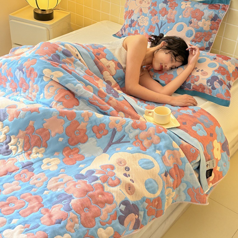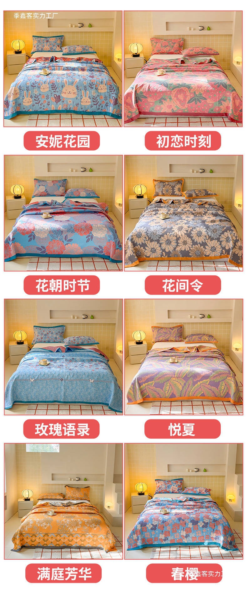 봄 여름 신색 면 클라우드 소프트 순면 3겹 거즈 수건 이불 3피스 커버 담요 여행 낮잠 담요