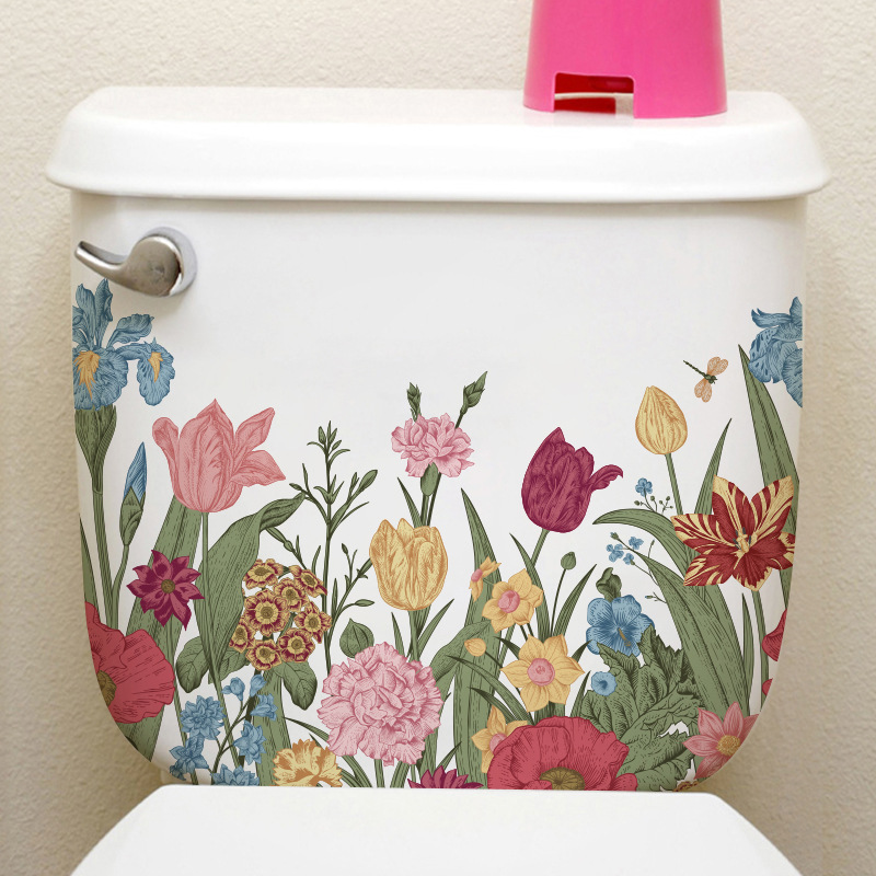 MT23055 천 가지 색상 화장실 스티커 욕실 꽃 벽 스티커 욕실 방수 만화 스티커