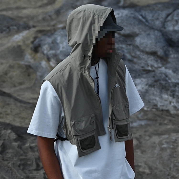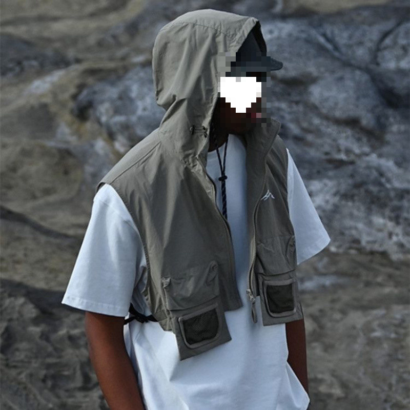 G2C 여름 산 스타일 야외 멀티 포켓 하프 바디 조끼 남성과 여성 작업복 후드 조끼 전술 기능성 스타일 조끼