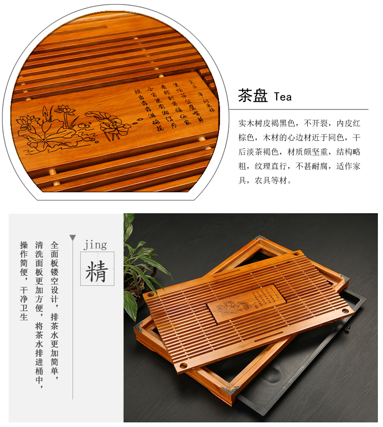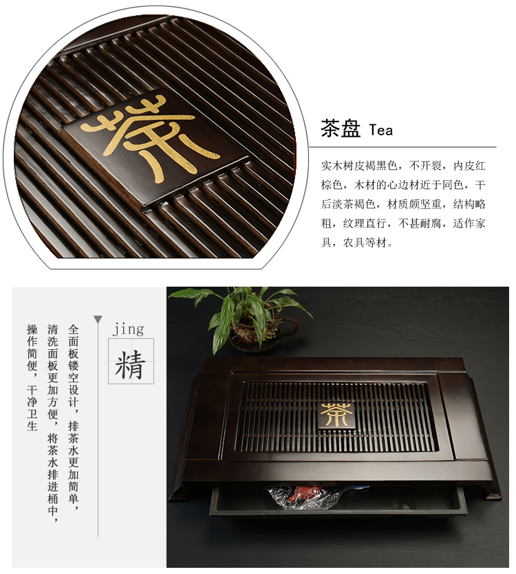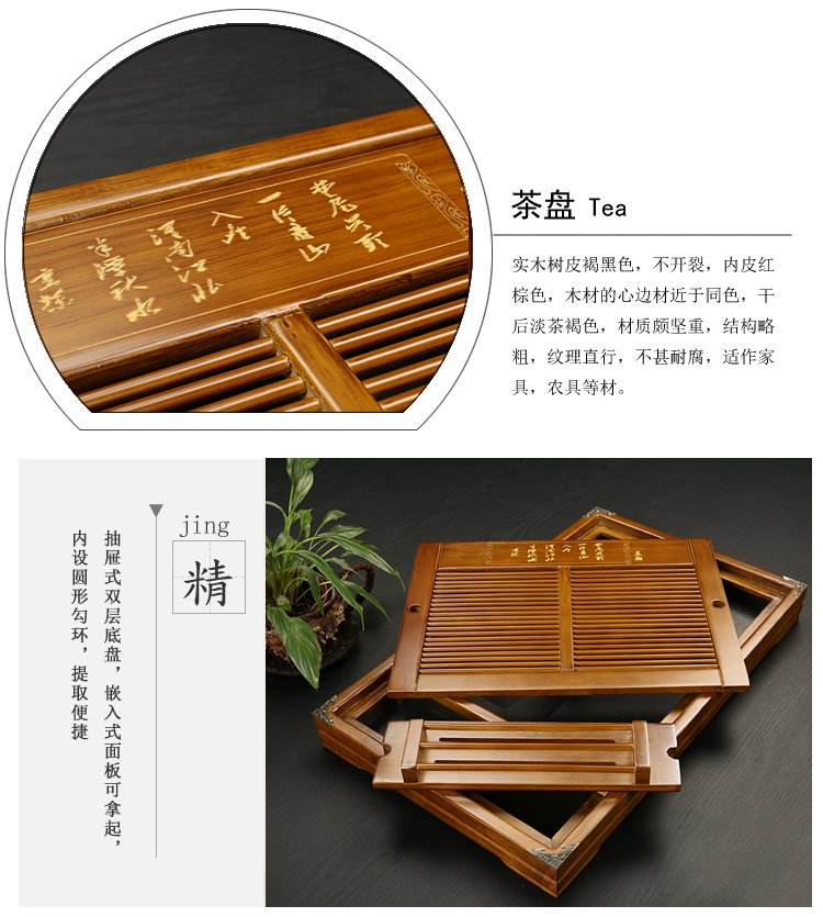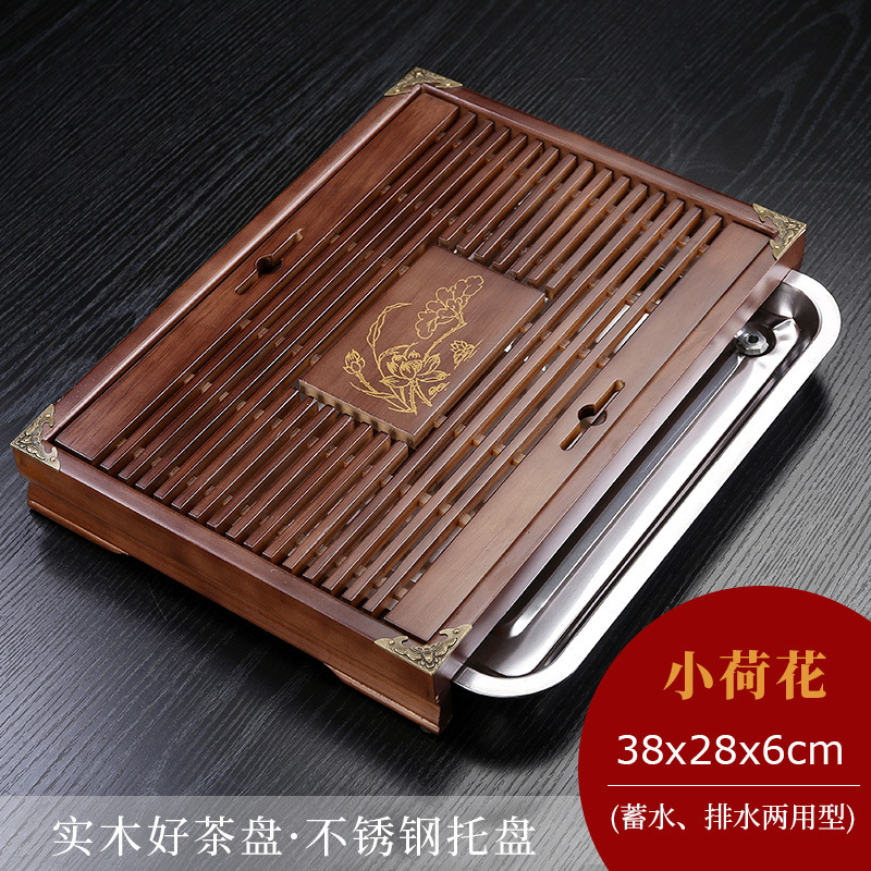 단단한 나무 차 트레이 세트 가정용 차 트레이 가정용 쿵푸 차 세트 배수 저장 단일 트레이 차 트레이가있는 차 테이블