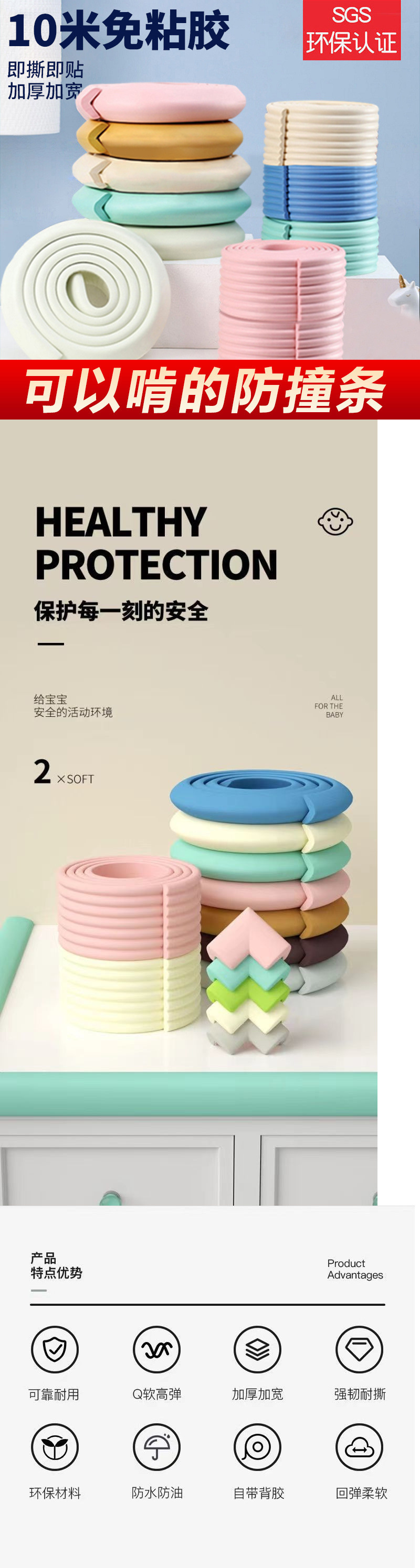 두꺼운 어린이 가정용 충돌 방지 스트립, 접착제가 없는 충돌 방지 스트립, 직각 테이블 모서리 충돌 방지 스트립, 유치원용스토어 가기
