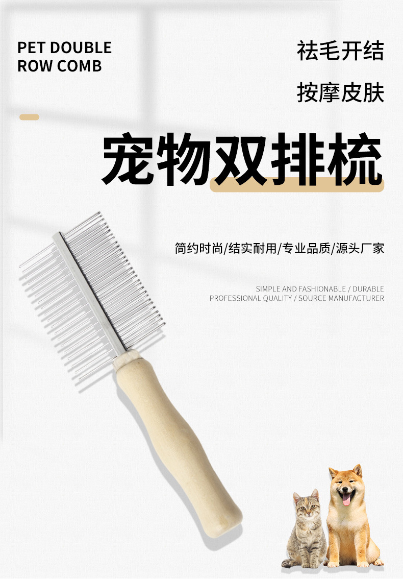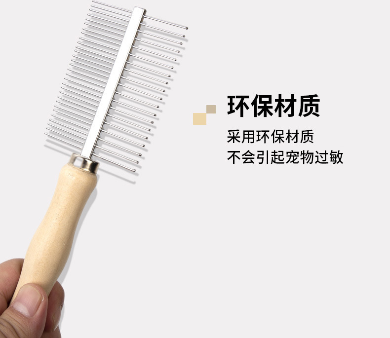애완 고양이 빗 나무 손잡이 단일/이중 행 높낮이 치아 고양이 털 빗질 및 정돈 도구