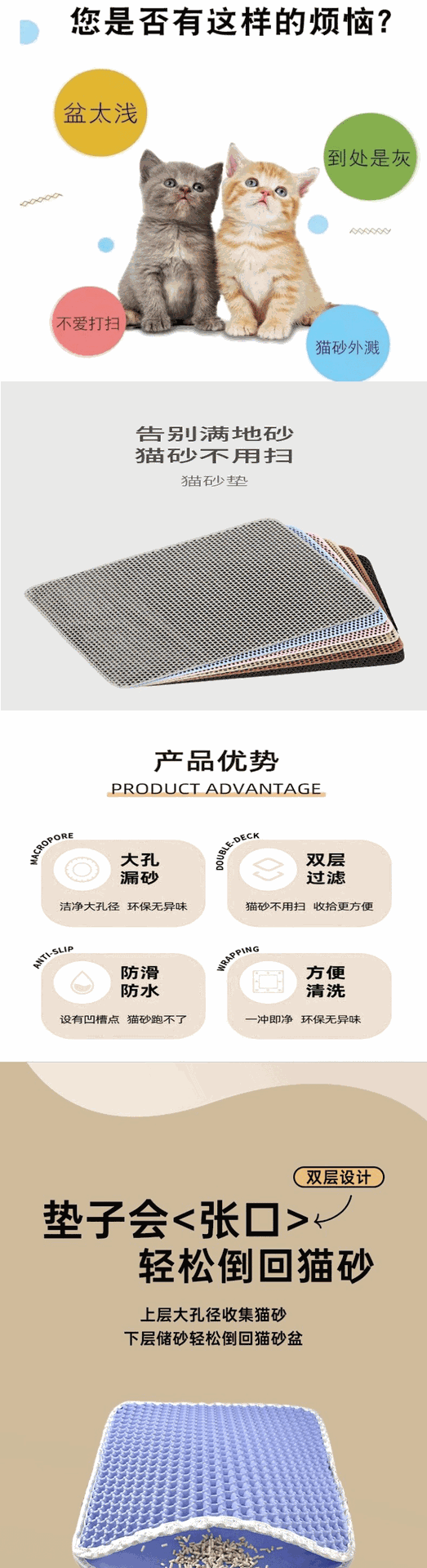 애완 동물 EVA 미끄럼 방지 고양이 모래 통과 모래 필터 매트 내마모성 및 긁힘 방지 이중층 세척 가능한 고양이 모래 매트 재고 있음