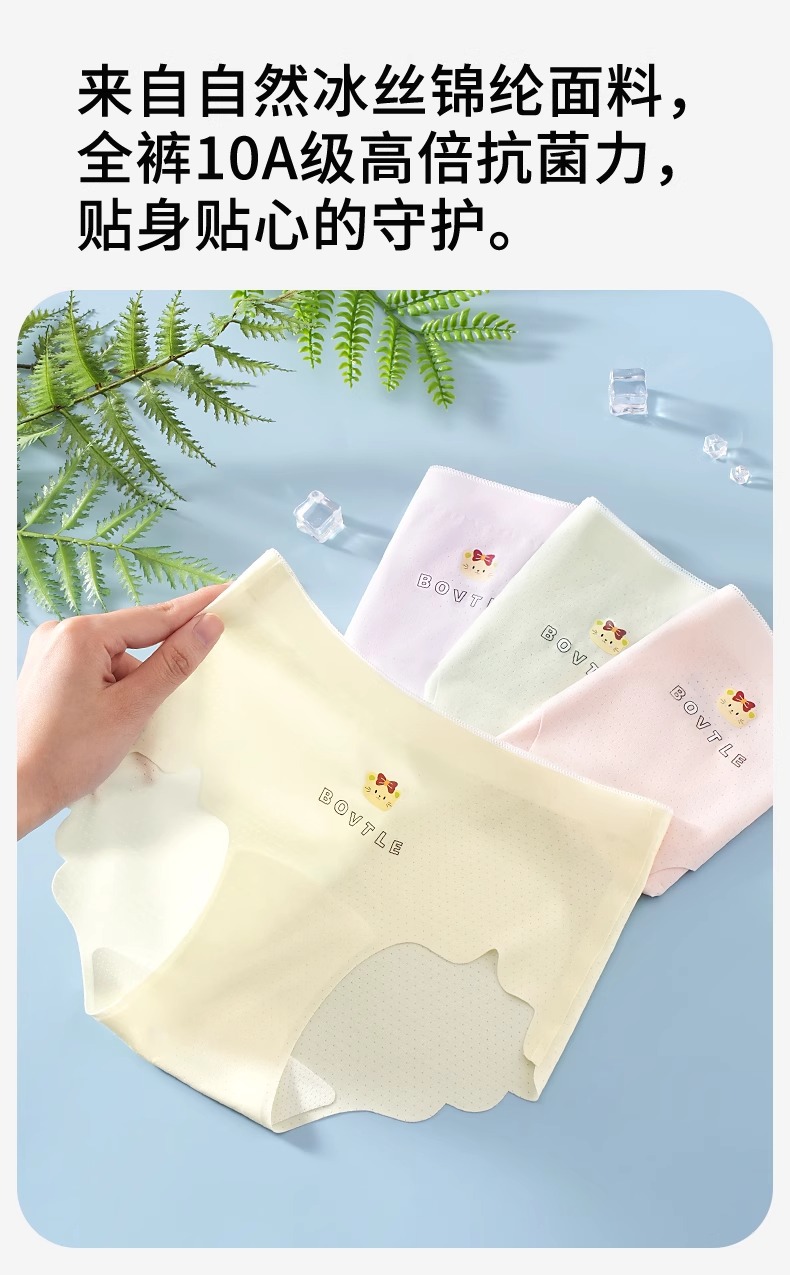 아동 속옷, A형 여아용 아이스 실크 반바지, 큰 아동용 여아용 사각팬티, 항균, 얇은 여름 스타일, 엉덩이를 조이지 않음스토어 가기