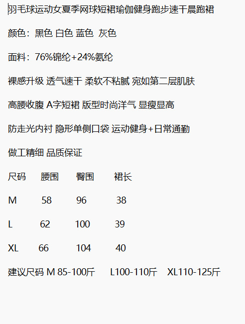 여름용 여성용 배드민턴 스커트 얇은 러닝 속건성 안전 바지 노출 방지 요가 피트니스 스커트