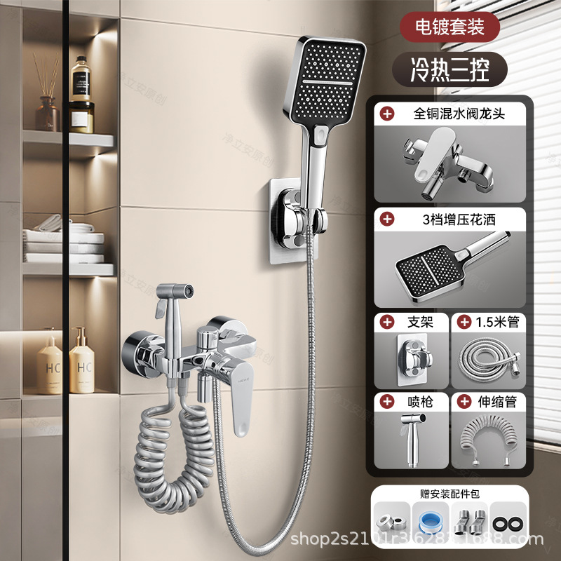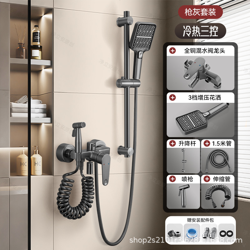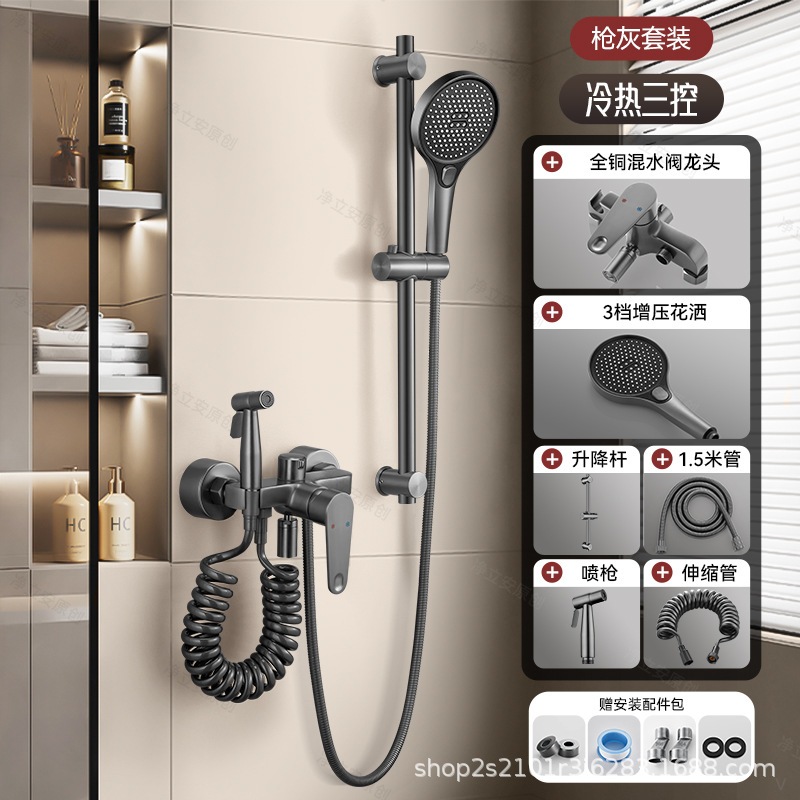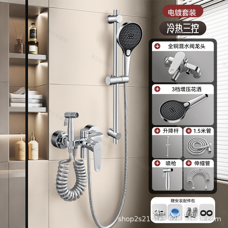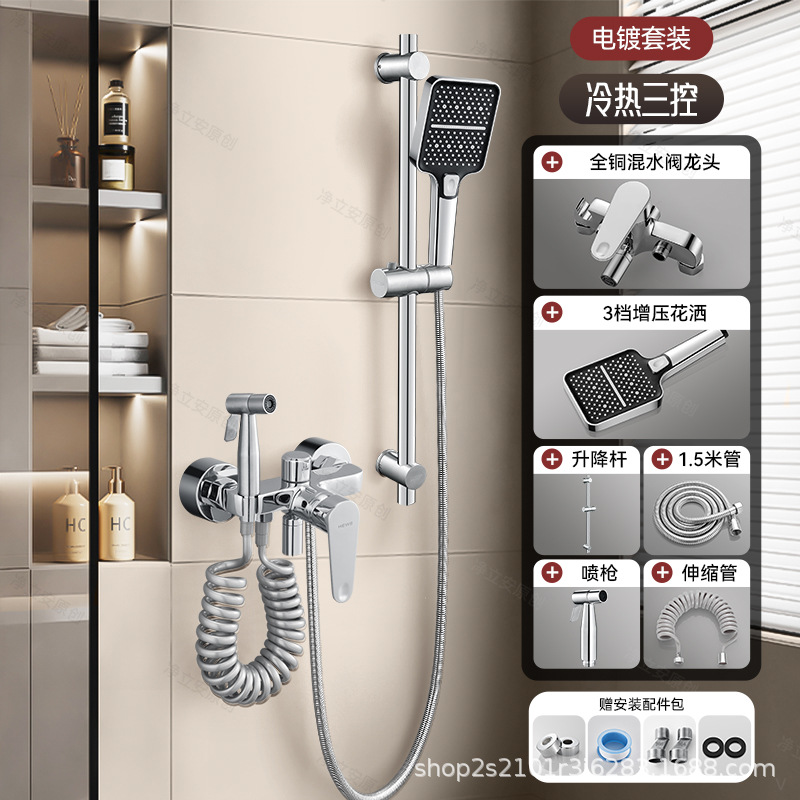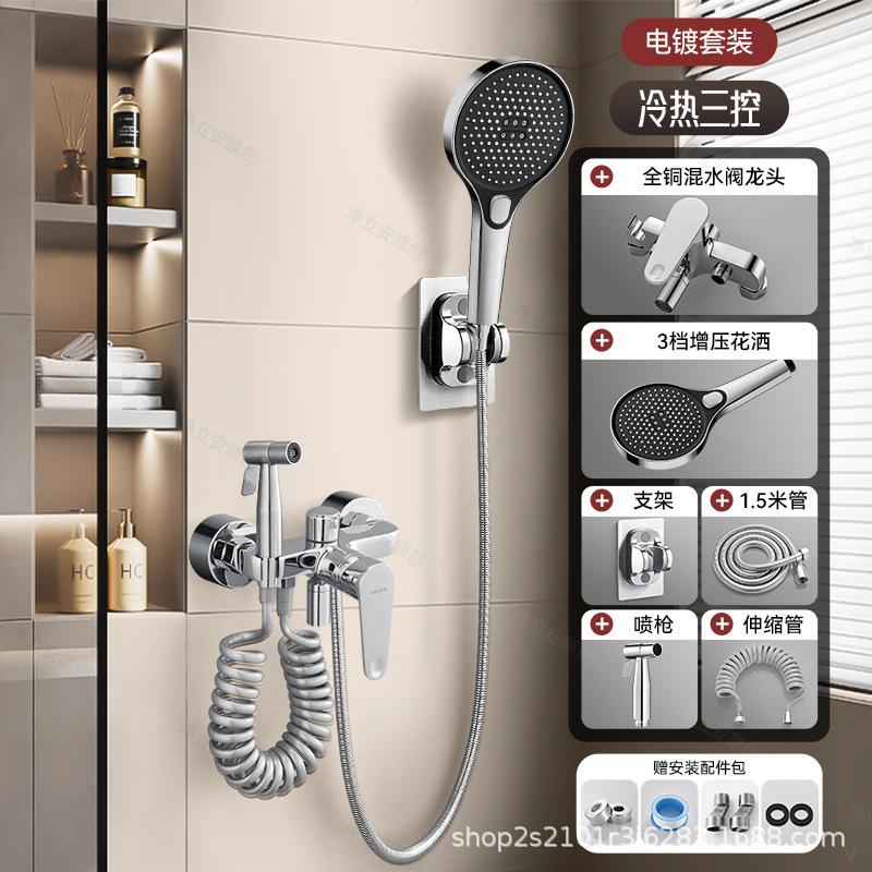 샤워 헤드 세트, 천장 없는 욕실용 전체 구리 간이 분할 가압 샤워기, 스프레이 건 포함, 전체 세트스토어 가기