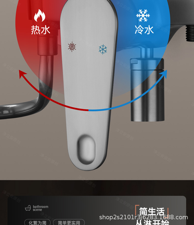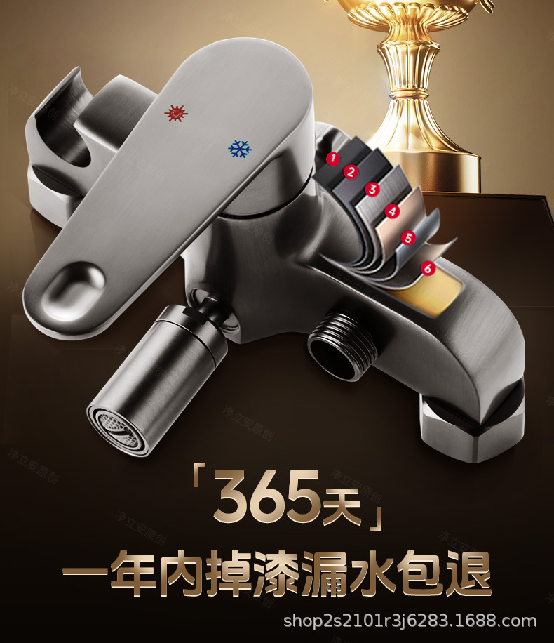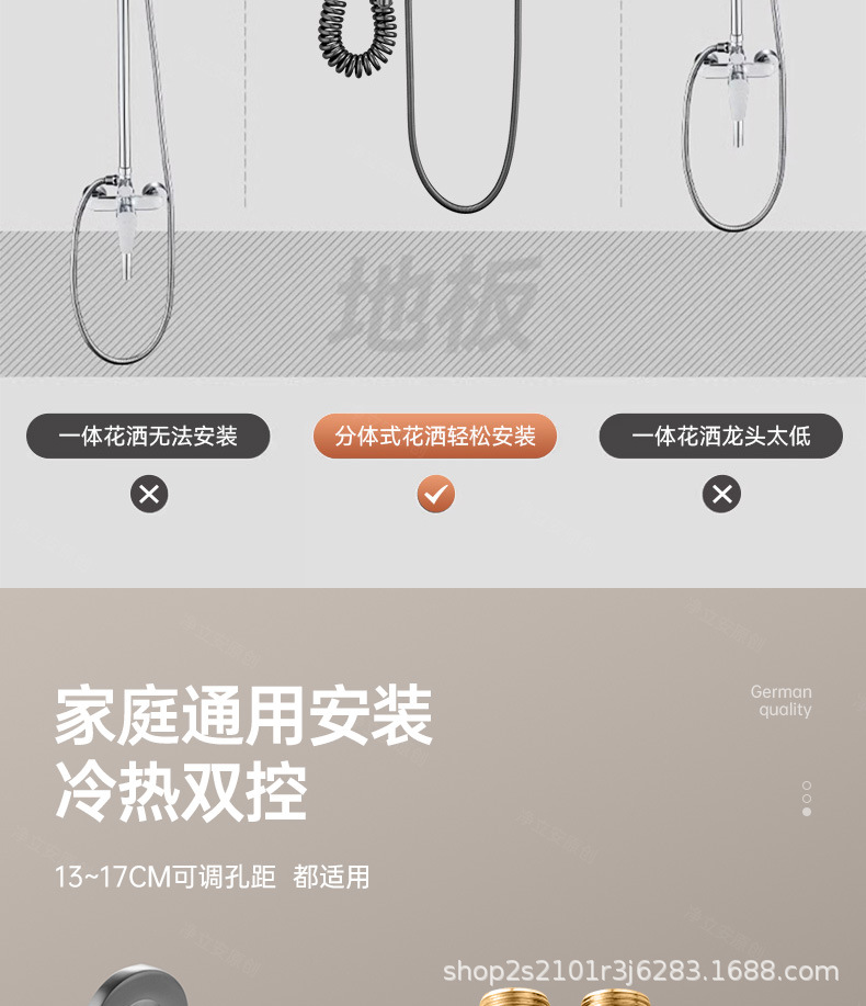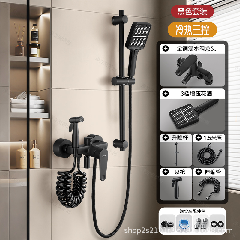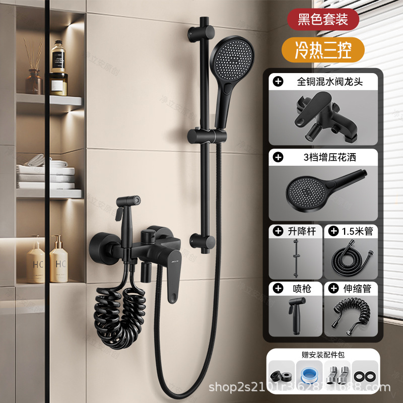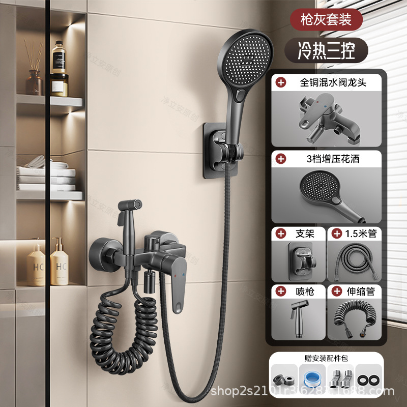 샤워 헤드 세트, 천장 없는 욕실용 전체 구리 간이 분할 가압 샤워기, 스프레이 건 포함, 전체 세트스토어 가기