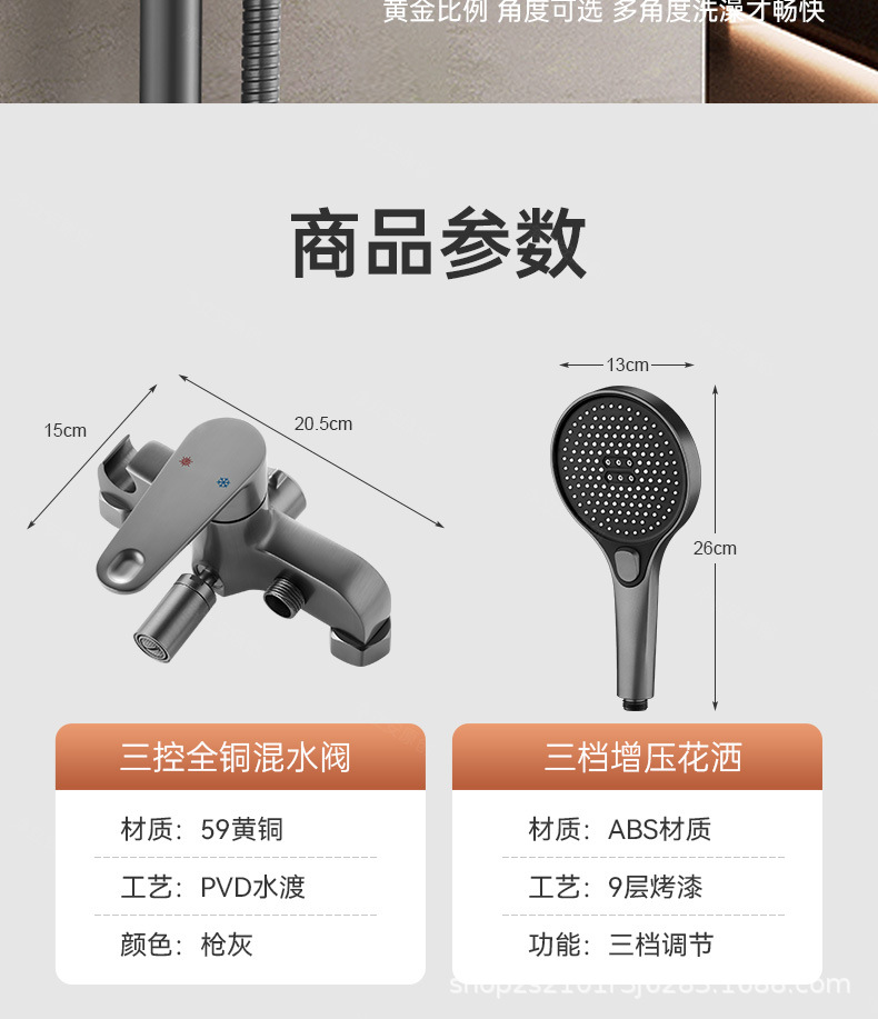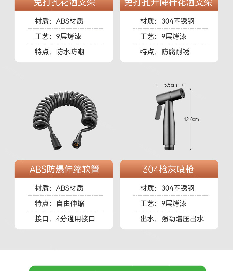 • 건 그레이 스퀘어●스프레이 건이 포함된 간단한 샤워 세트