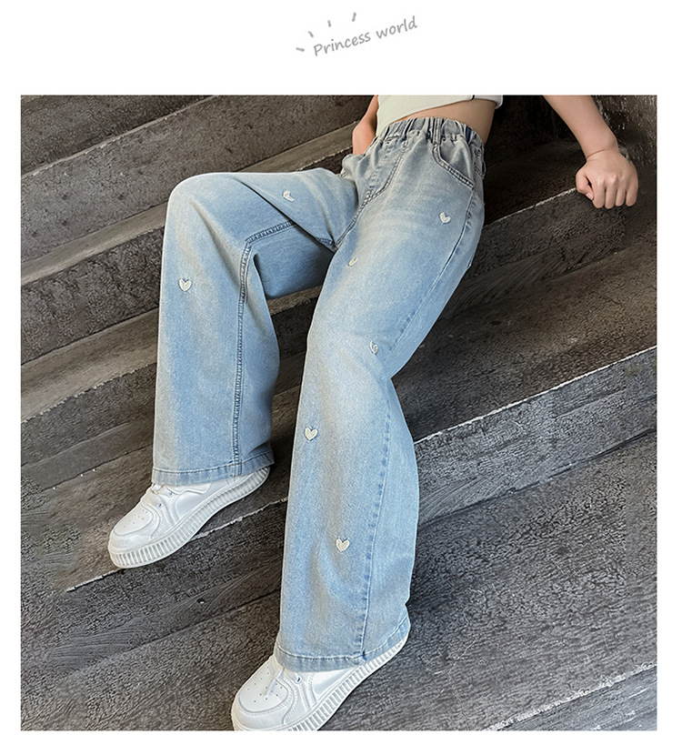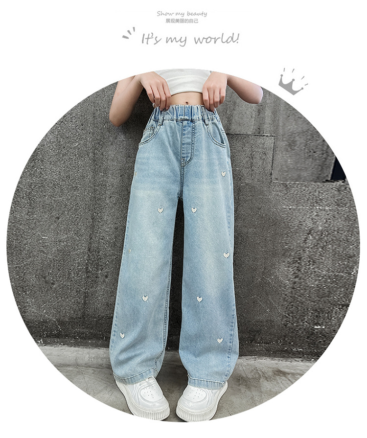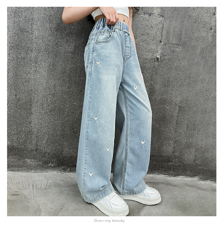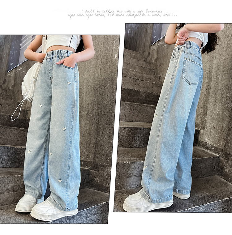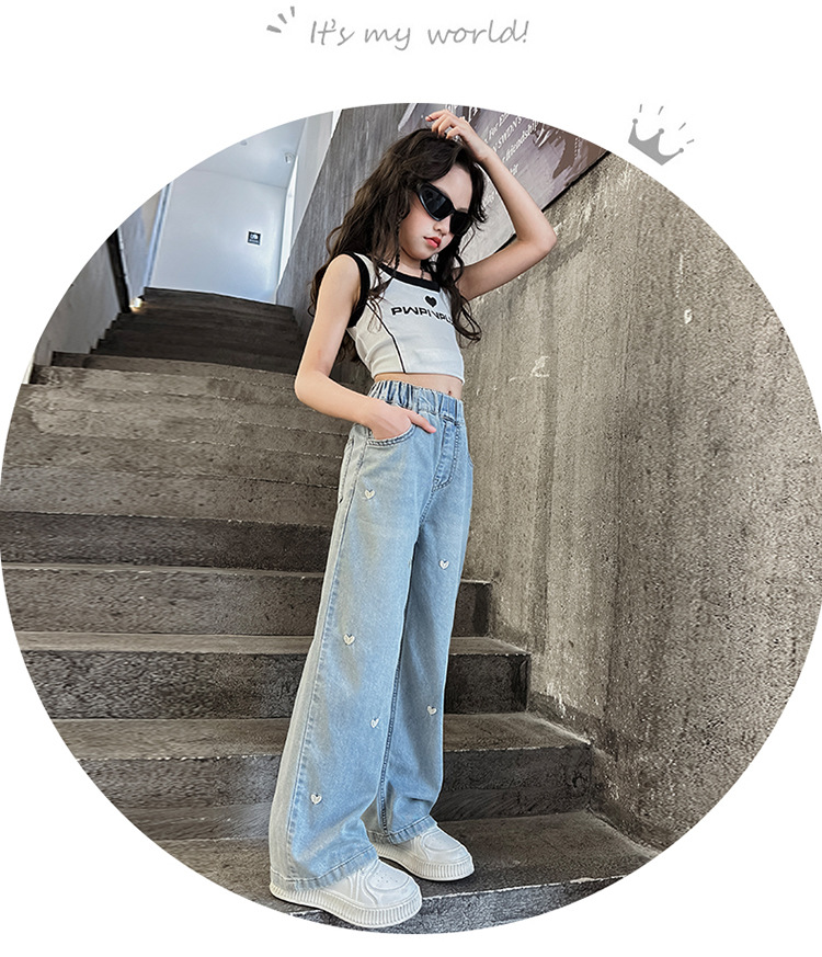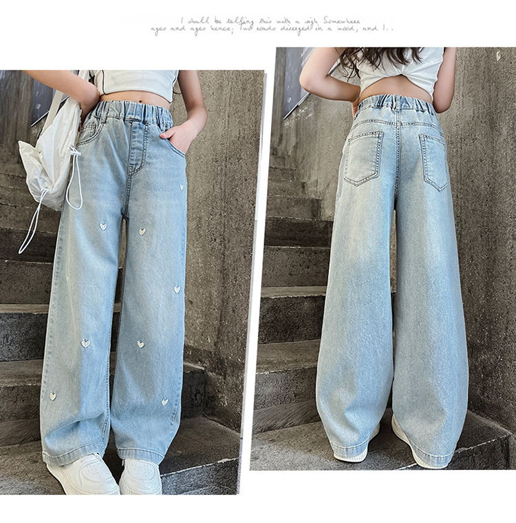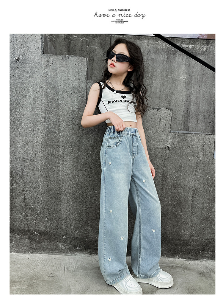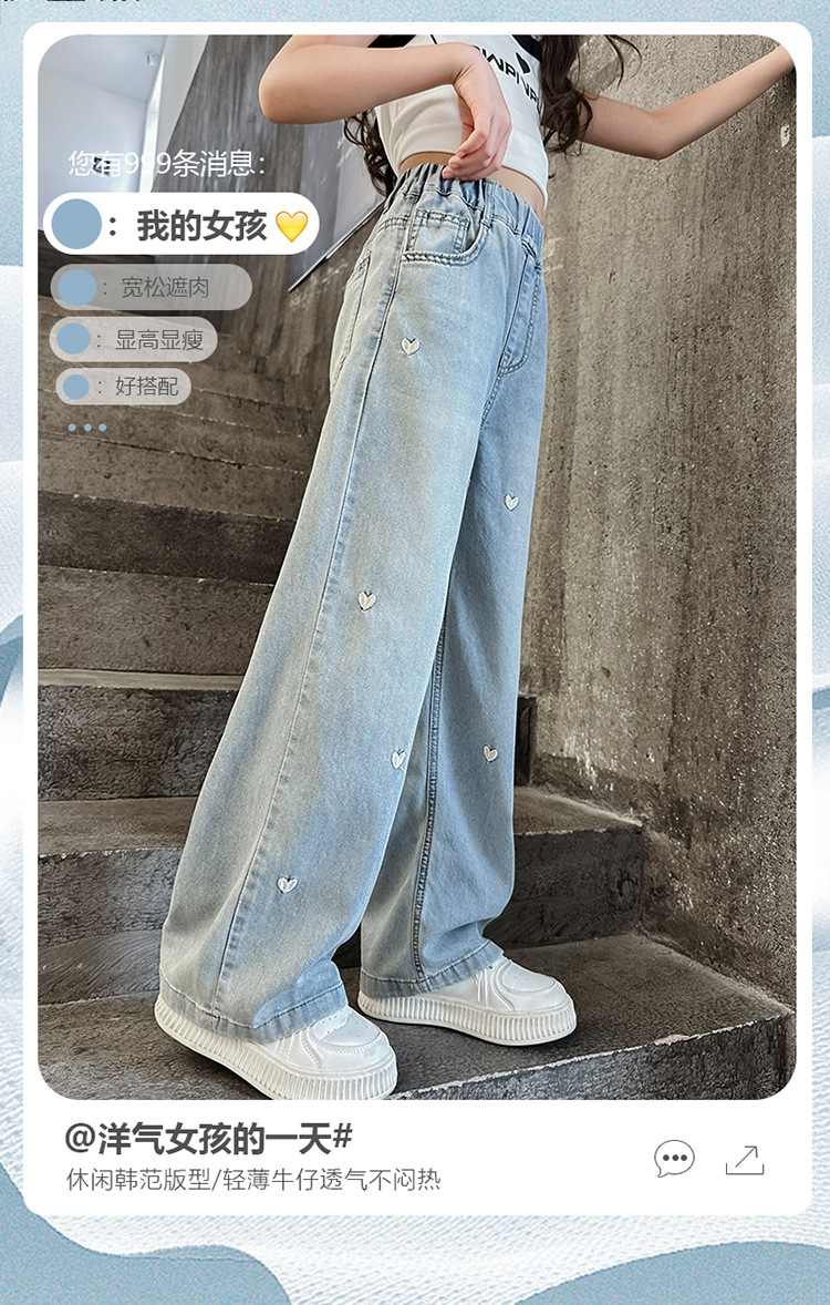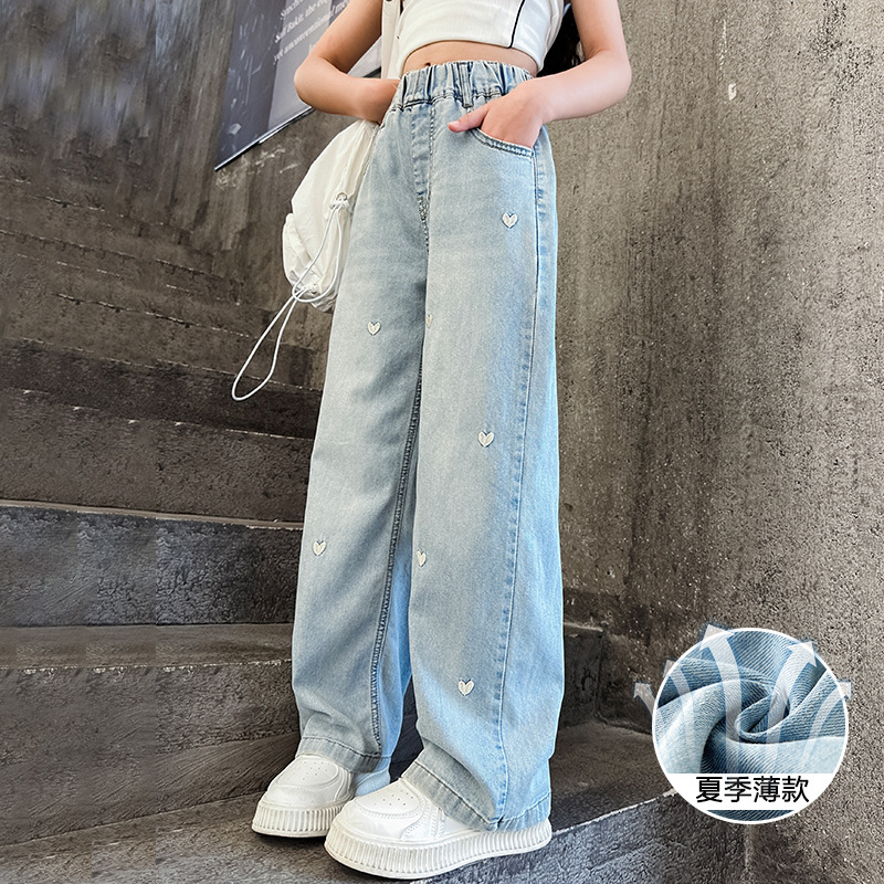 여아 청바지 여름 2025 새로운 스타일 여아 좁은 와이드 팬츠 여름 착용 중학생 여아 바지 얇은 스타일스토어 가기