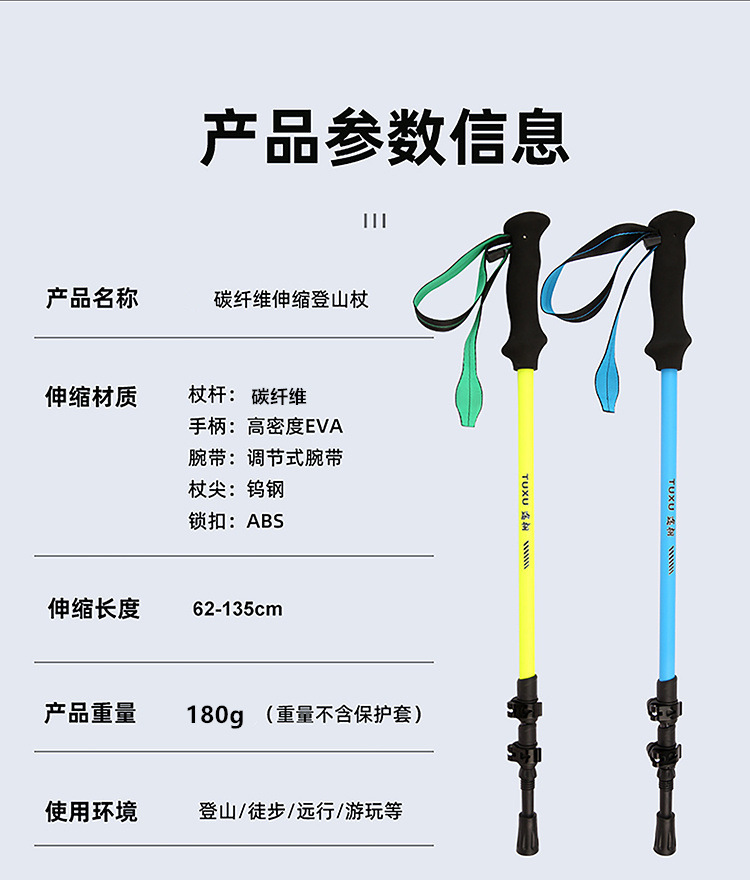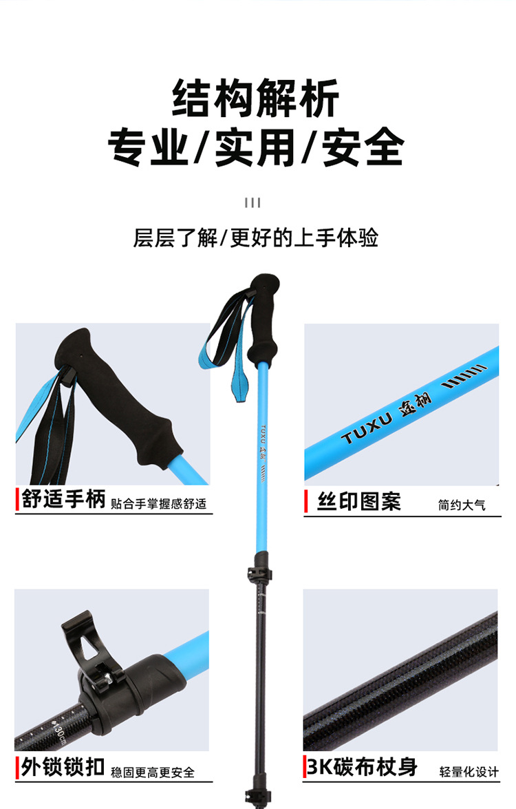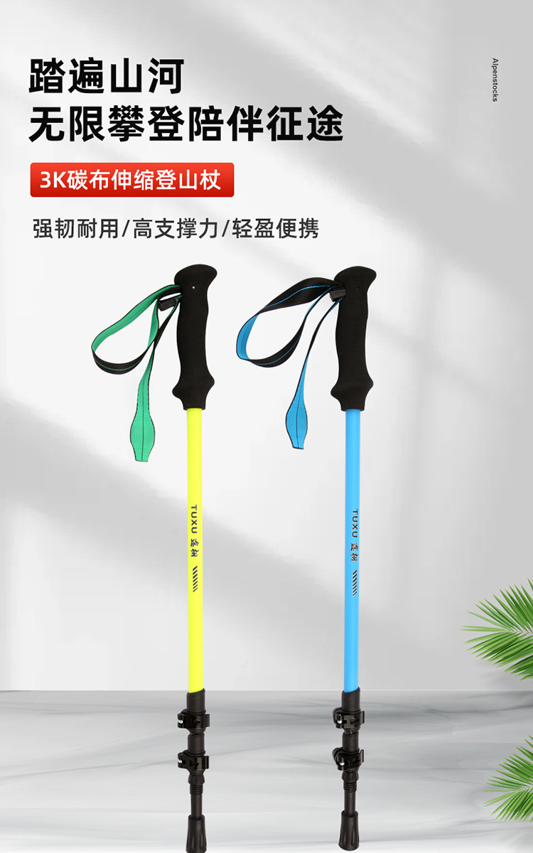 탄소 섬유 트레킹 스틱, 탄소 텔레스코픽 지팡이, 전문 등산 장비, 야외 하이킹 텔레스코픽 스키 스틱