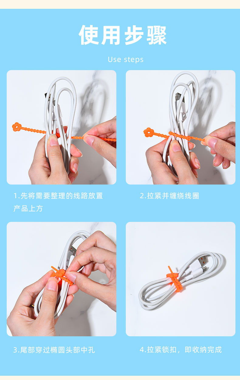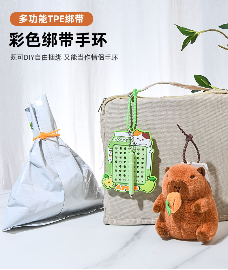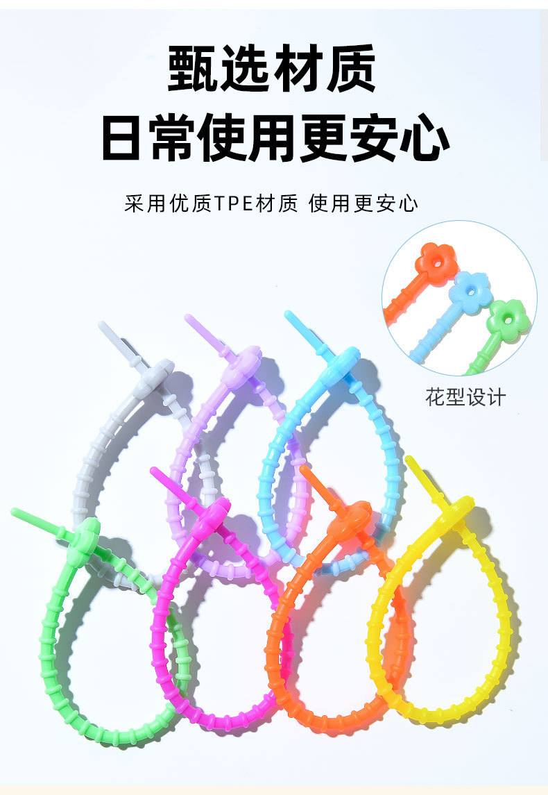 다채로운 실리콘 케이블 타이 키 체인 DIY 의류 가방 쥬얼리 키 체인 끈 데이터 케이블 보관 케이블 와인더