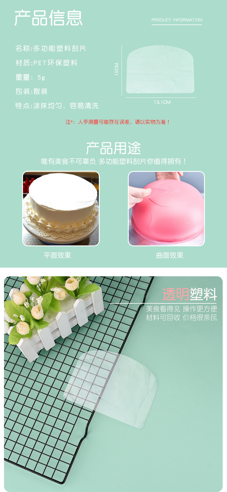 다기능 스크레이퍼, 떡 스크레이퍼, PET 투명 소프트 스크레이퍼, 주방 반죽 스크레이퍼, 식품 등급 베이킹 칼 5종 세트