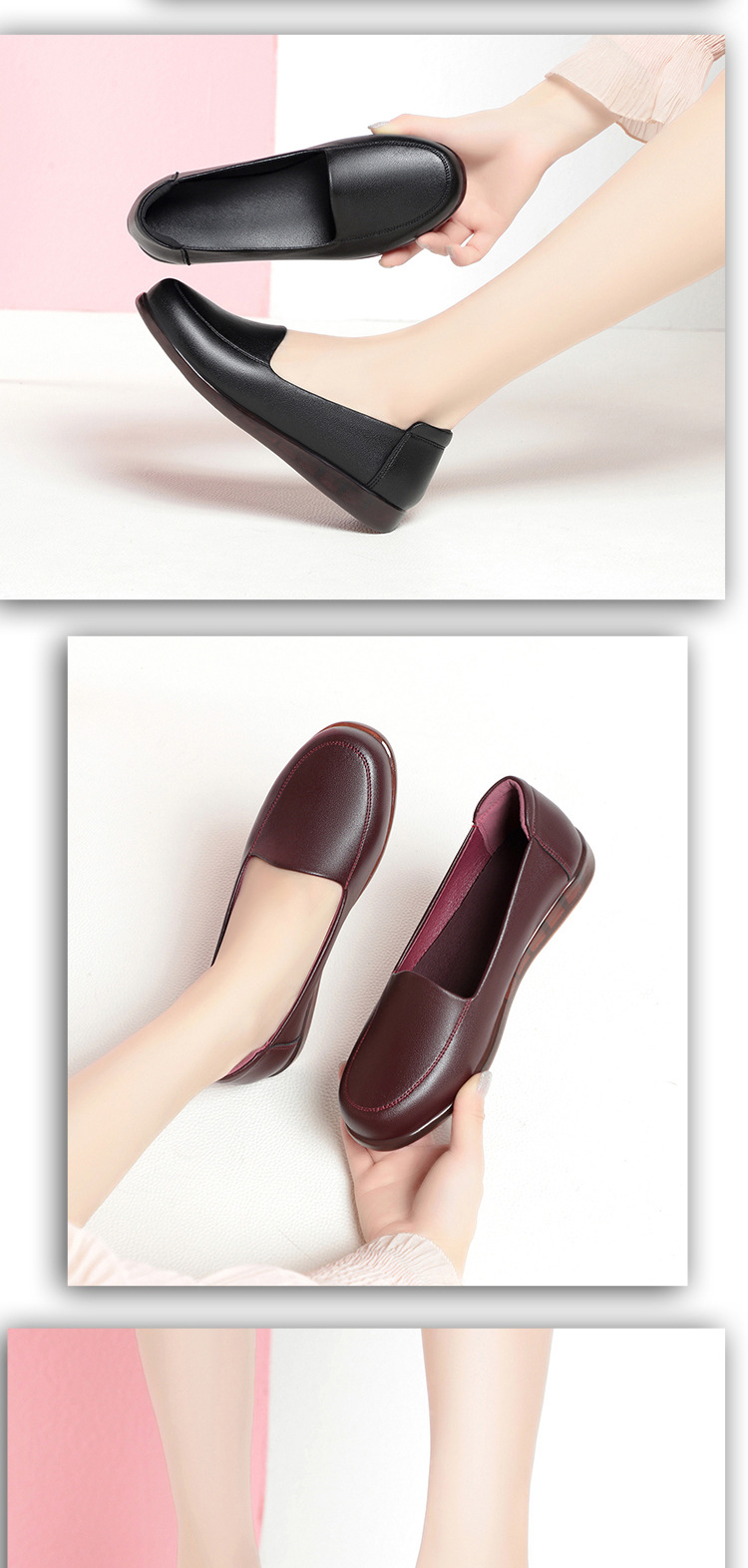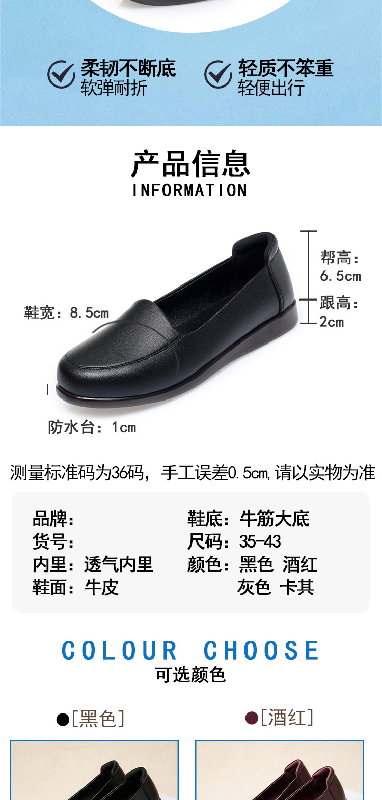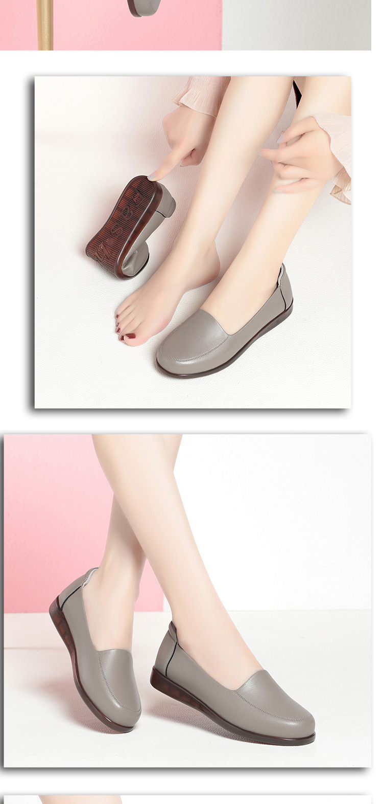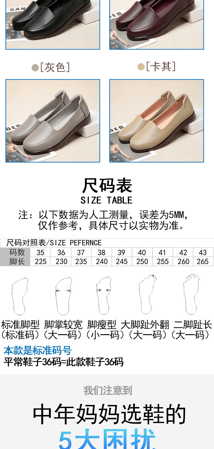 엄마 가죽신, 천연가죽, 부드러운 밑창, 미끄럼 방지, 중노년용 싱글 슈즈, 편안한 노인용 대형 여성화 41 플랫 43 신발 42스토어 가기