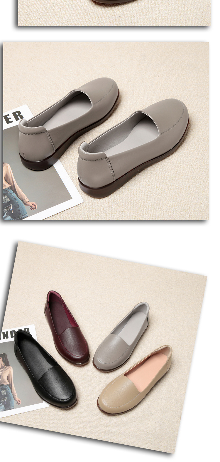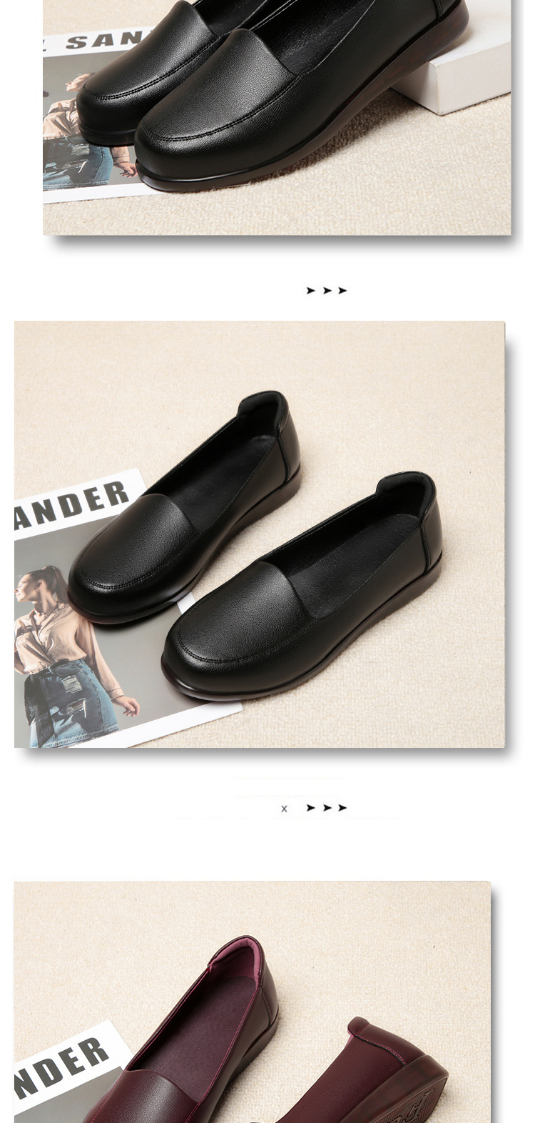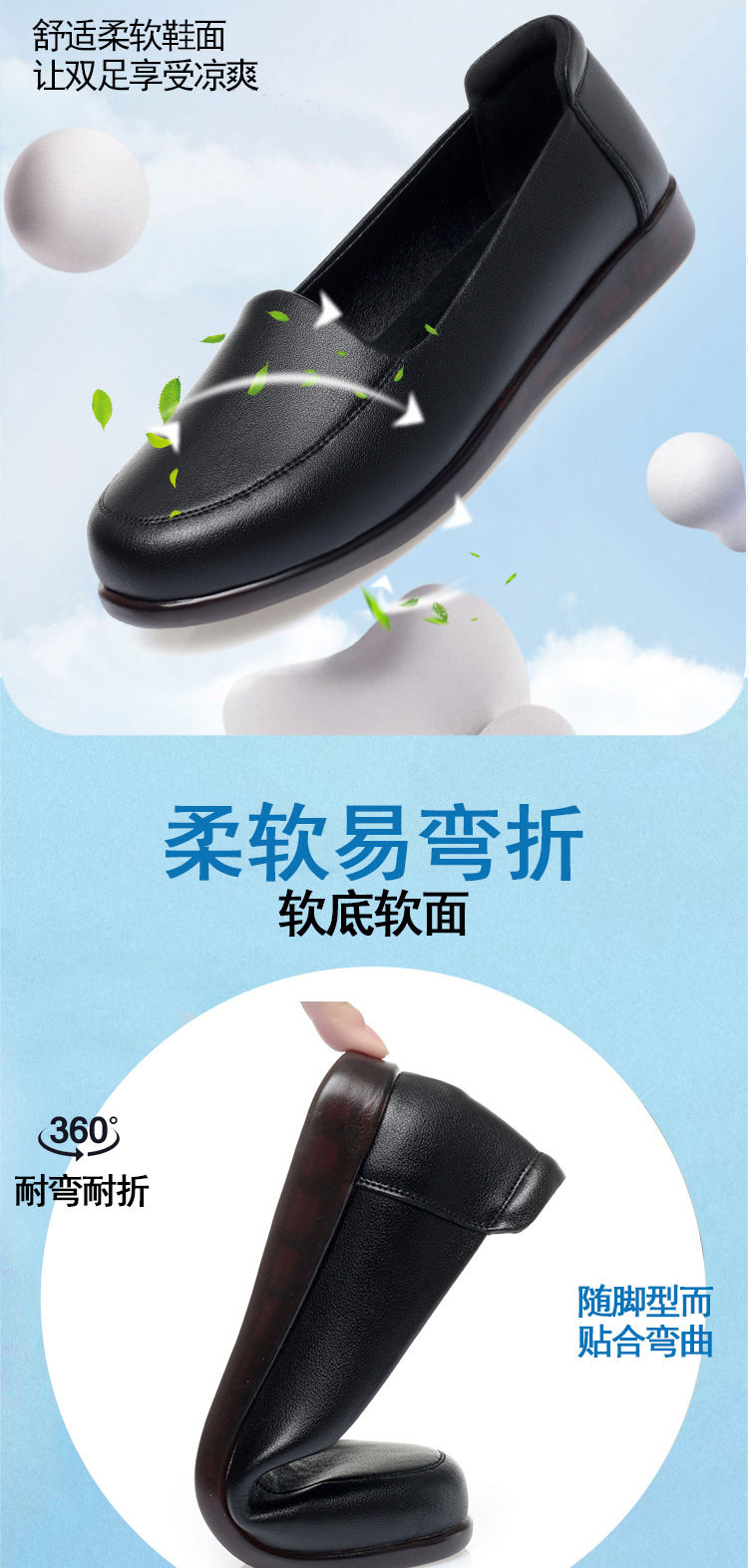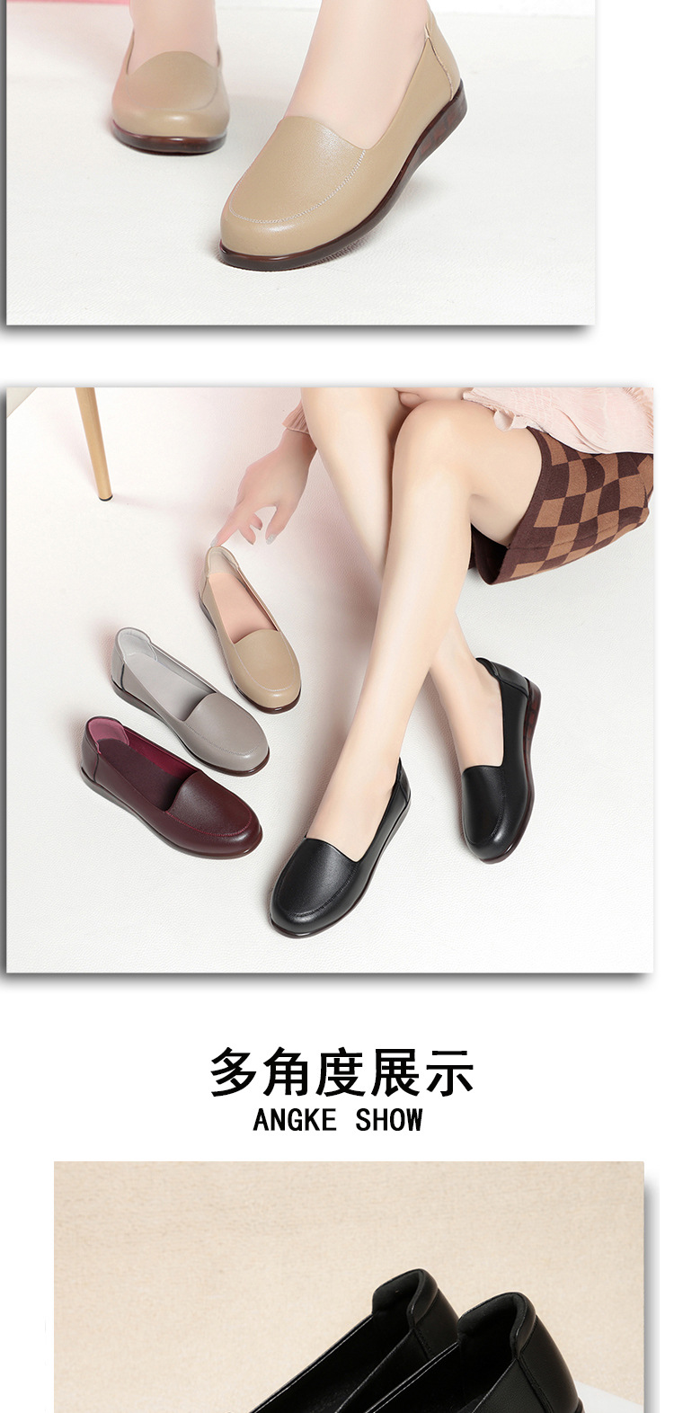 엄마 가죽신, 천연가죽, 부드러운 밑창, 미끄럼 방지, 중노년용 싱글 슈즈, 편안한 노인용 대형 여성화 41 플랫 43 신발 42스토어 가기
