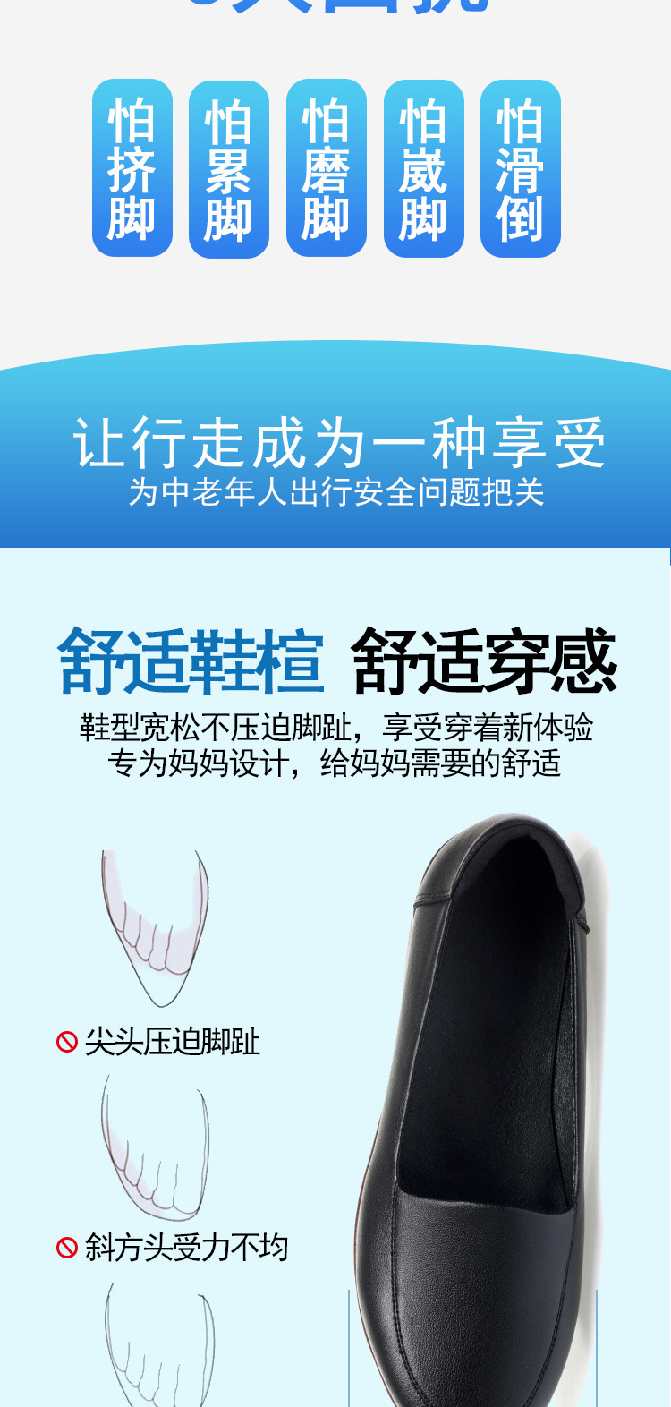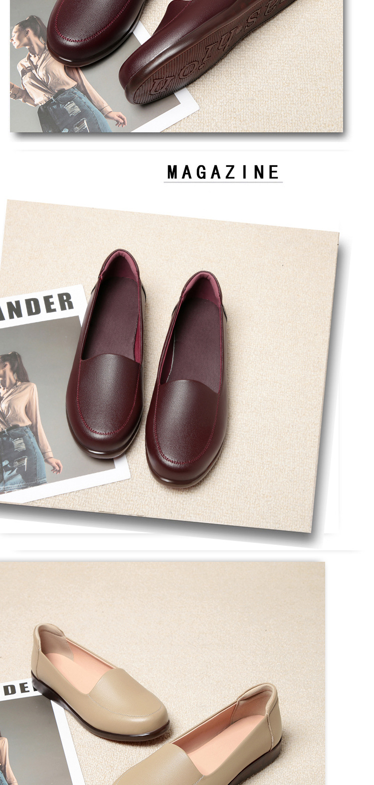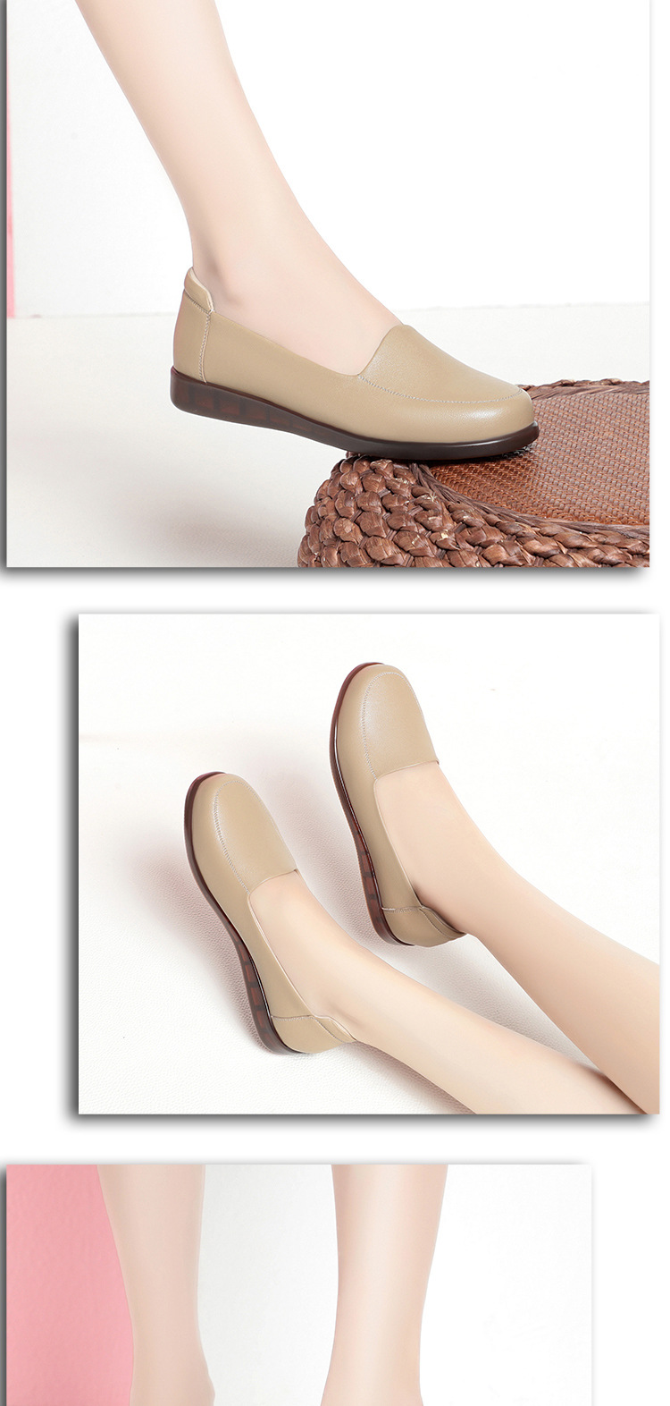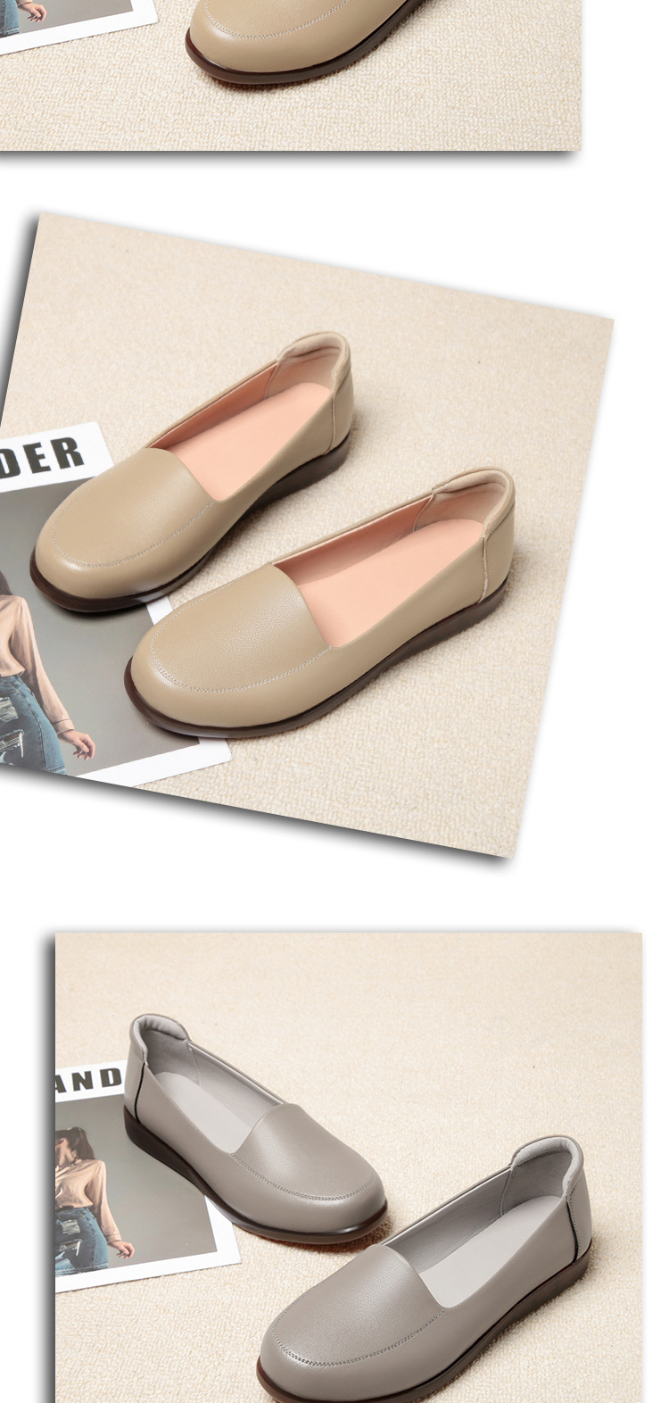 엄마 가죽신, 천연가죽, 부드러운 밑창, 미끄럼 방지, 중노년용 싱글 슈즈, 편안한 노인용 대형 여성화 41 플랫 43 신발 42스토어 가기