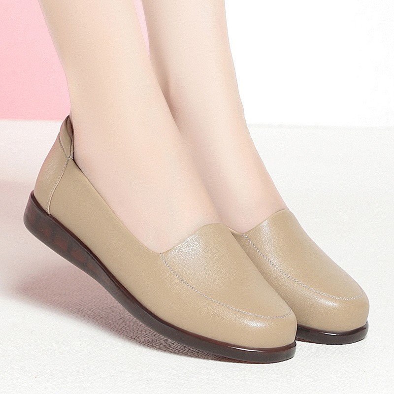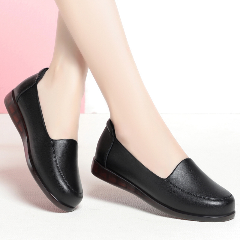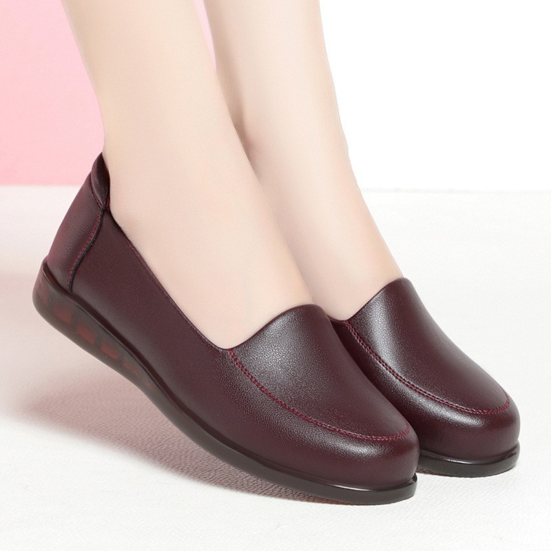 엄마 가죽신, 천연가죽, 부드러운 밑창, 미끄럼 방지, 중노년용 싱글 슈즈, 편안한 노인용 대형 여성화 41 플랫 43 신발 42